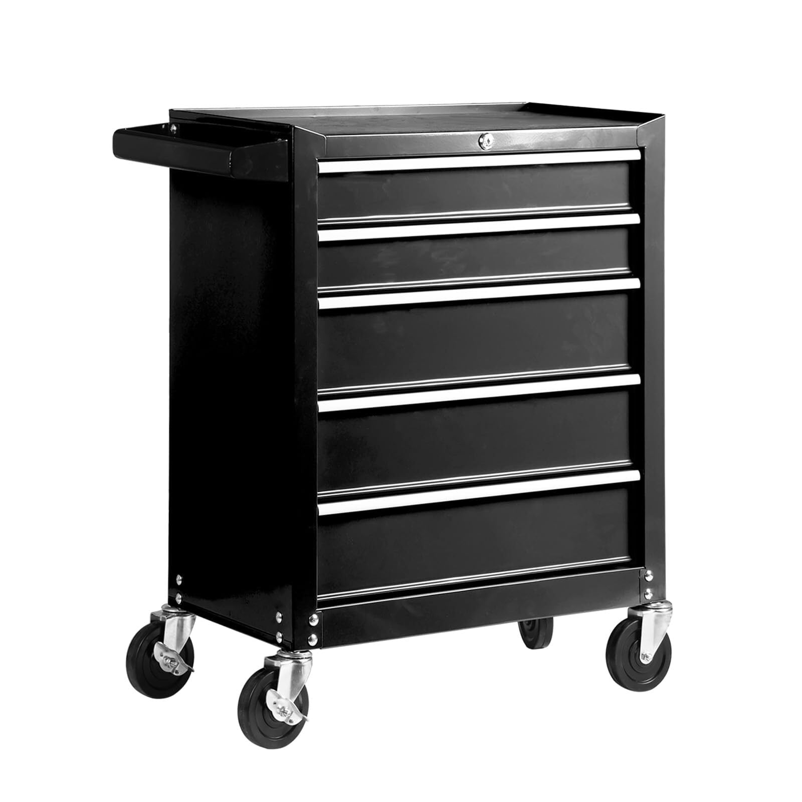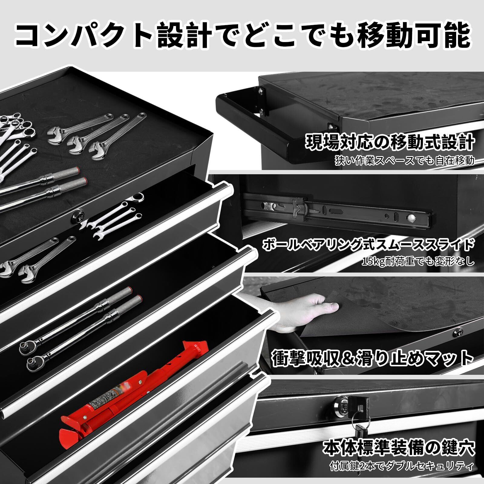 Jack Boss ツールキャビネット 強化5段ローラーキャビネット ツールボックス 5段タイプ 多目的工具箱 多段収納 スチール製 鍵付き 工具箱 大容量 ブラック