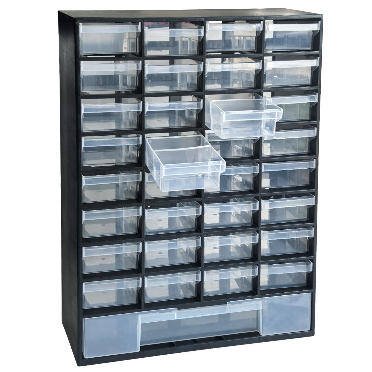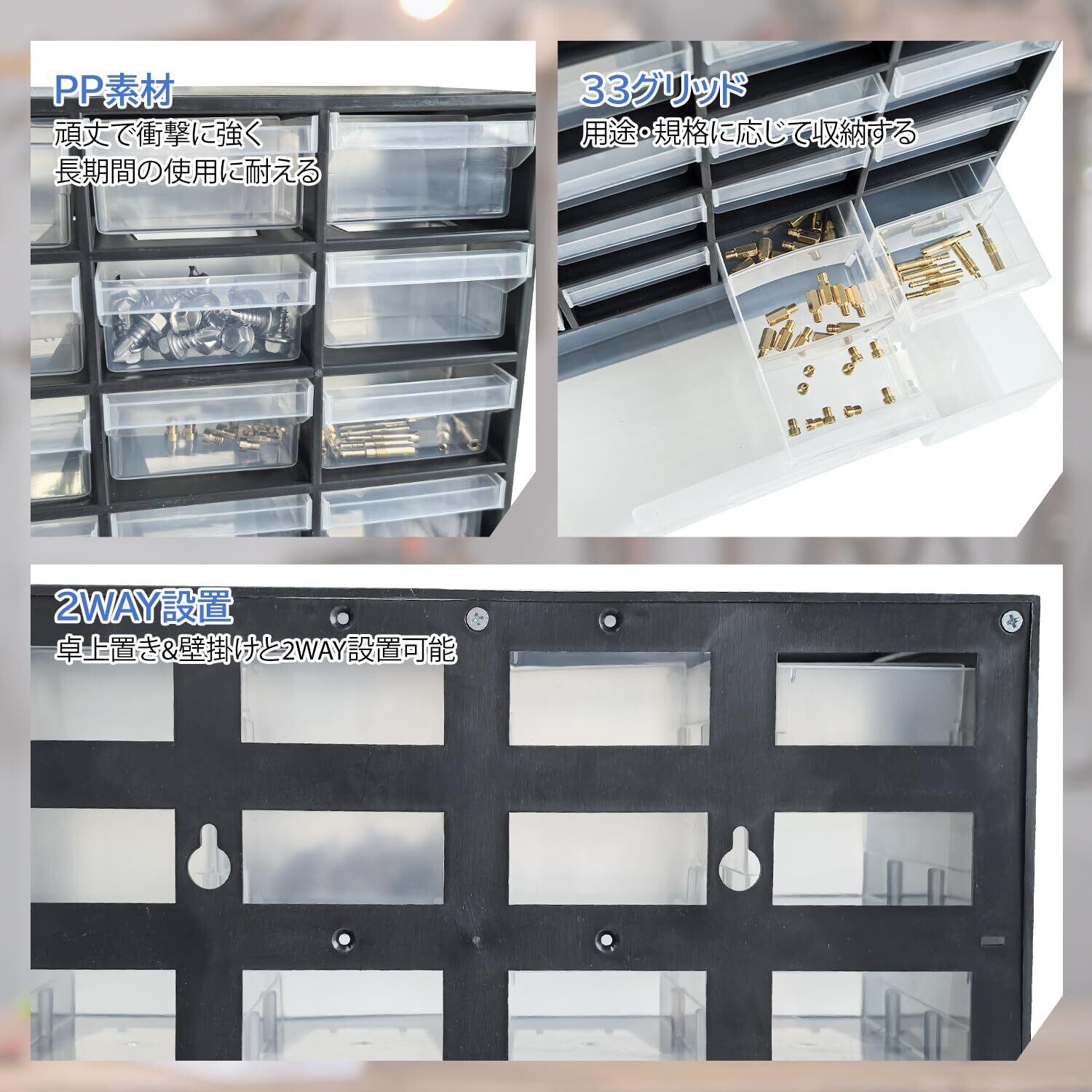 Socpuro パーツキャビネット 33グリッド 引き出し 部品収納 キャビネット 大容量 41*30*13cm 卓上 & 壁掛け パーツケース プラスチック製 工具箱 ツールボックス 小物入れ 小型部品 収納整理 仕切り付 作業場向け (ブラック) | KSショップ