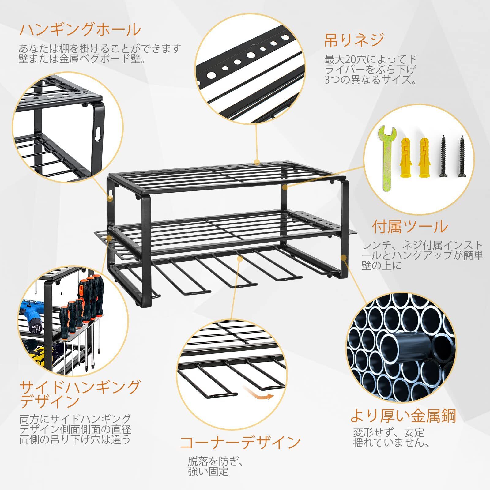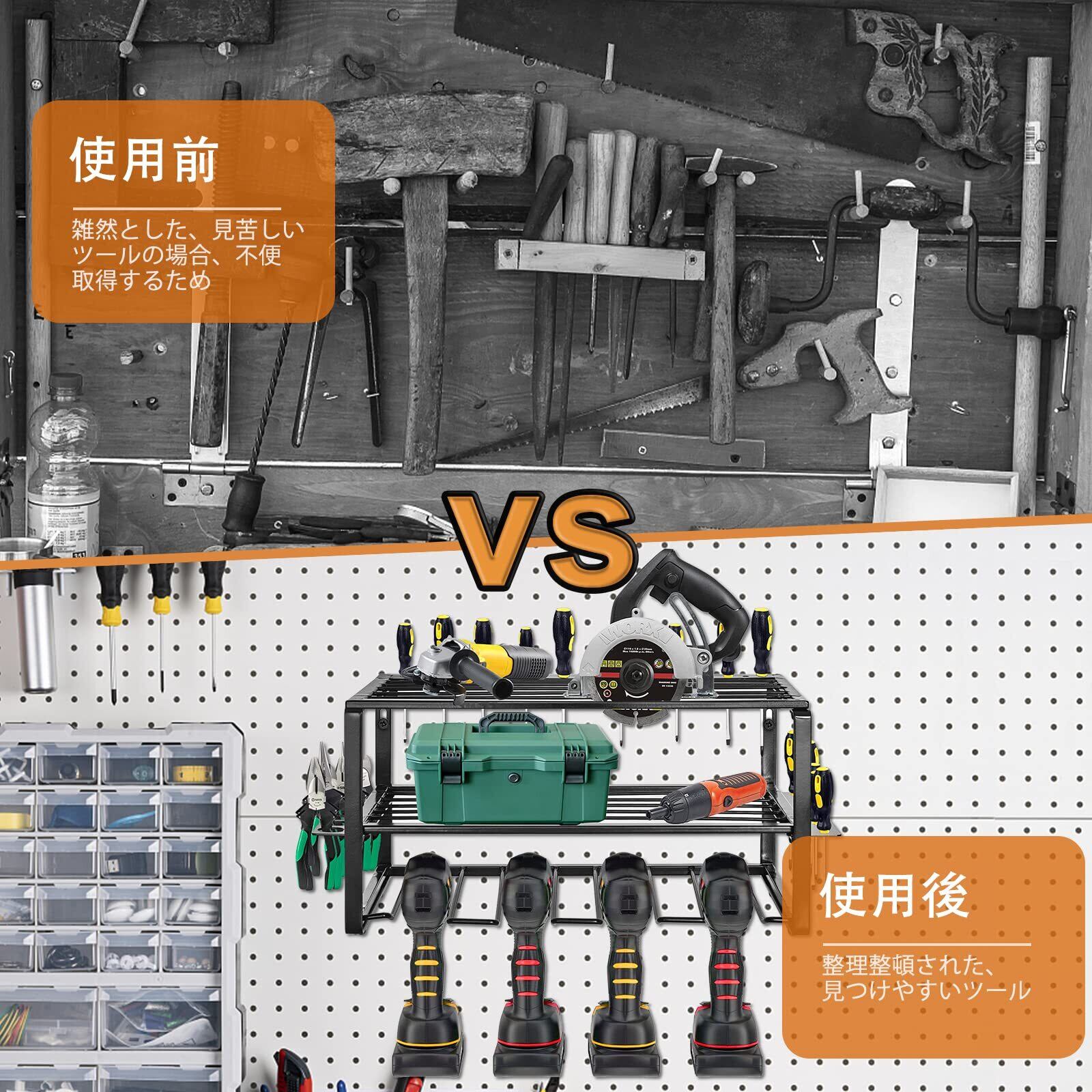 Rxakuded 壁掛け ツール 収納 電動工具 収納 工具 棚 電動ツールドリル用 3段 鉄 壁マウントスタイルツールストレージ パワーツールドリル用 多機能