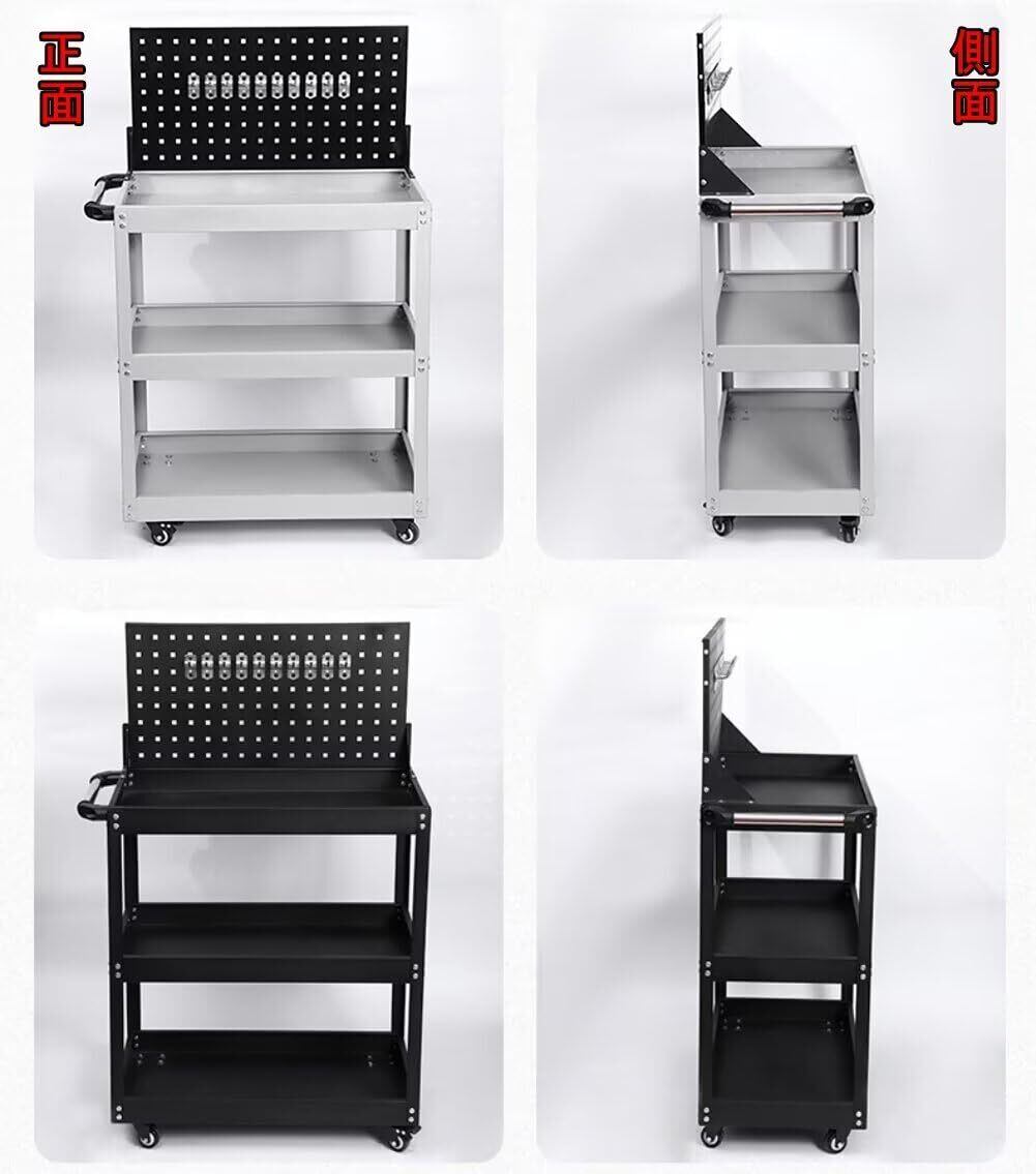 MIMIER ツールワゴン ツールカート 工具ワゴン 工具カート 3段 ドライバーホルダー キャスター付 耐荷重165KG メッシュパネル付 ハンドル付 360度回転 移動 DIY ガレージ 工具台車 工具収納 ブラック 黒 | KSショップ