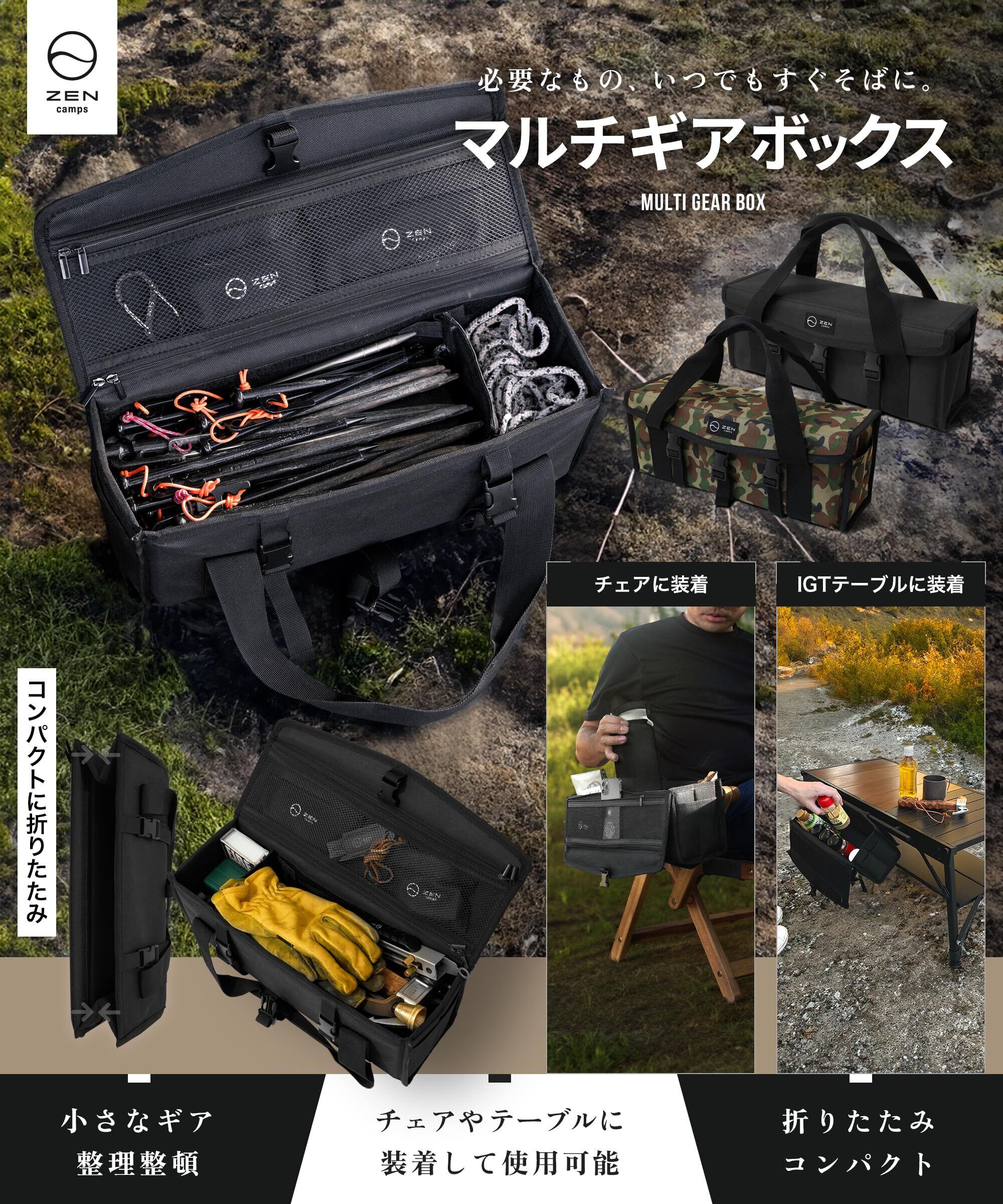 ZEN Camps 折り畳みマルチギアボックス、ソフトコンテナ、ソフト収納ボックスです。大容量、畳めばコンパクト。 ブラックとカモフラージュの2色展開。