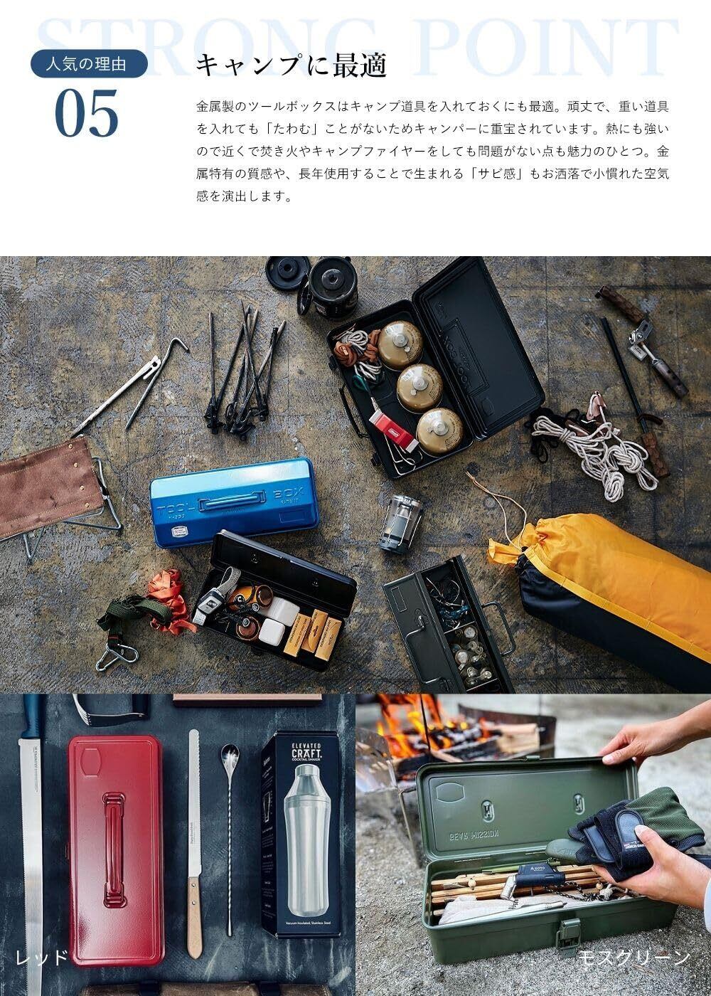 工具収納はもちろん、キャンプ・DIY・アウトドアなど、様々な用途で使えます。 カラーバリエーション豊富で、お好きな色からお選びいただけます。