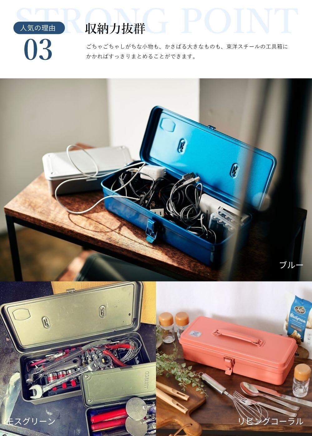 手にやさしい、継ぎ目のない絞りタイプで丈夫なスチール製のツールボックス