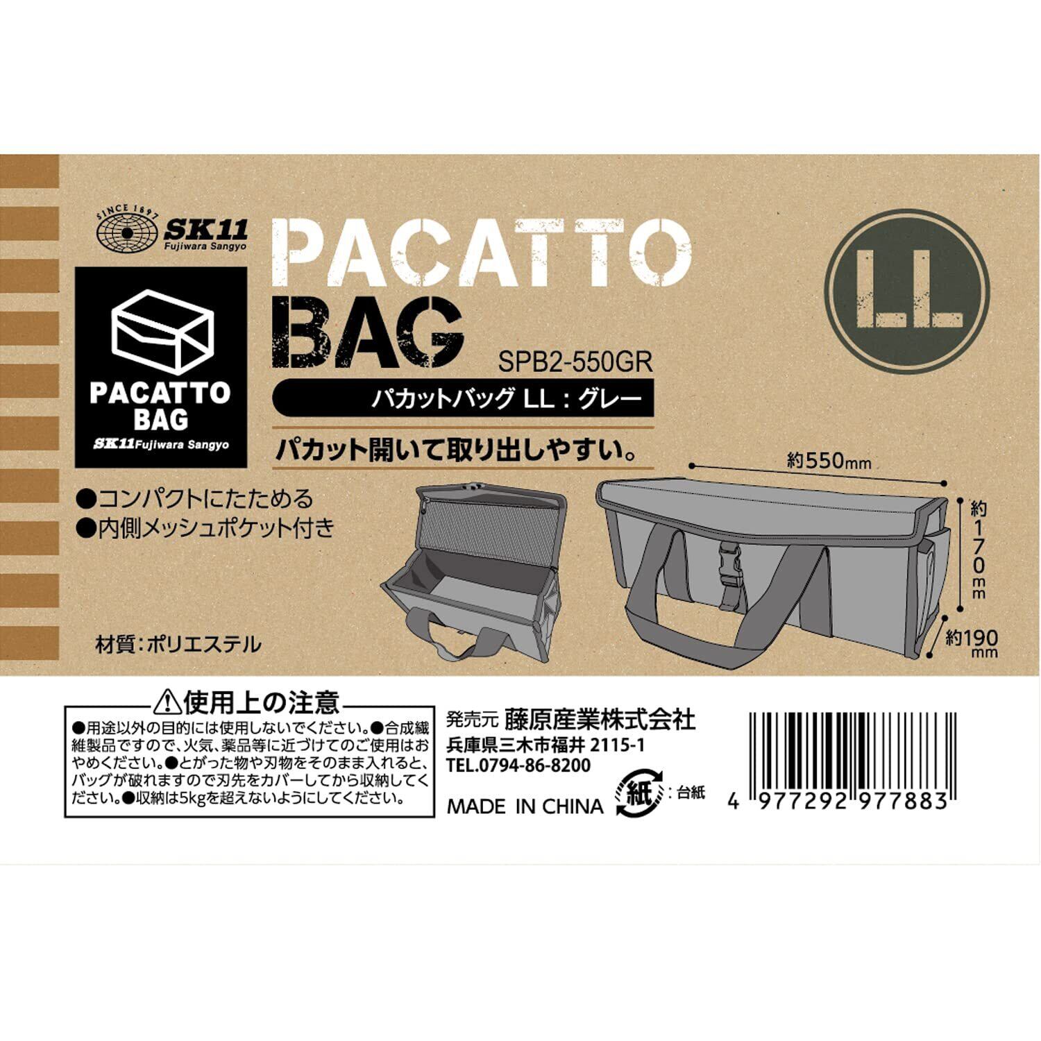 SK11(エスケー11) 大きく開いて取り出しやすい パカットバッグ ライトグレー ツールバッグ キャンプ ペグ ブロワー クリーナー収納 SPB2-550GR