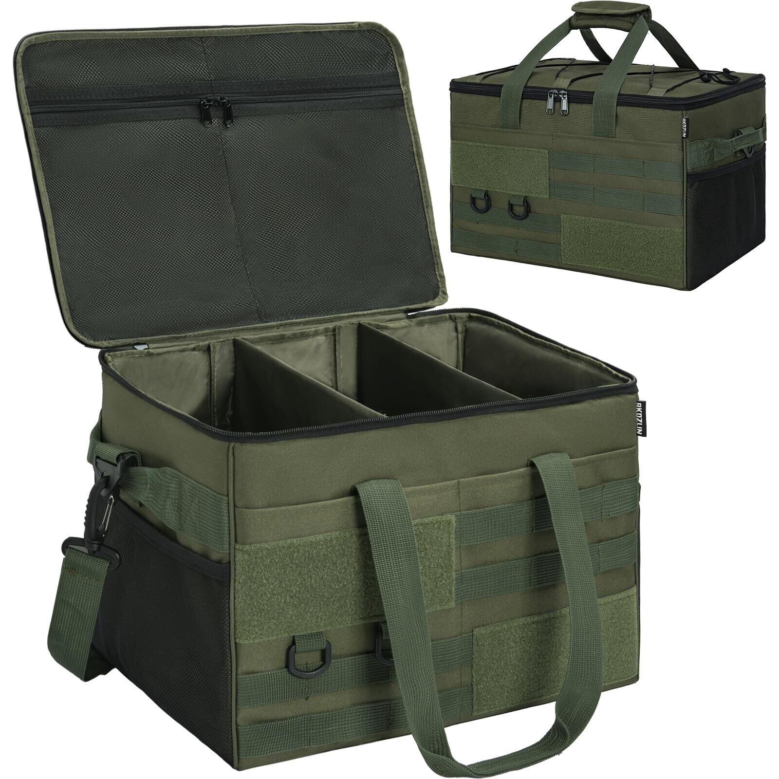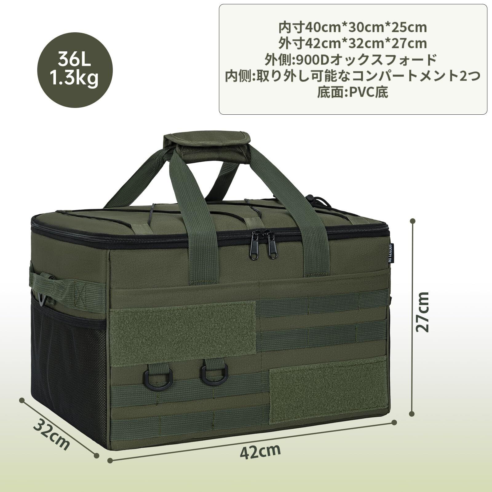 AKOZLIN キャンプ 収納ボックス ソフトコンテナ ツールボックス コンテナボックス 仕切り板付 アウトドア キャンプバッグ キャンプ道具収納 大容量 防水 折りたたみ可能 40×30×25cm グリーン | KSショップ