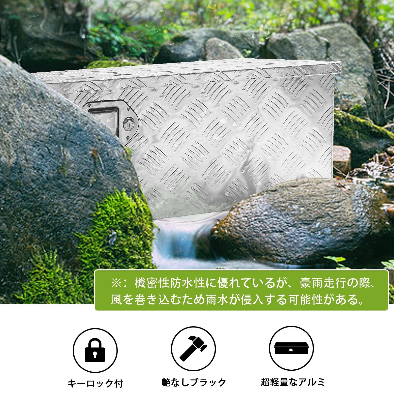 【高品質な素材】この荷台ボックスはプラスチックのように日焼けして劣化したり、錆びる心配の無い超軽量なアルミ材質を採用し、頑丈で耐久性に優れるです。取っ手もクロムメッキ表面処理で錆びに強く、腐食しにくいです。