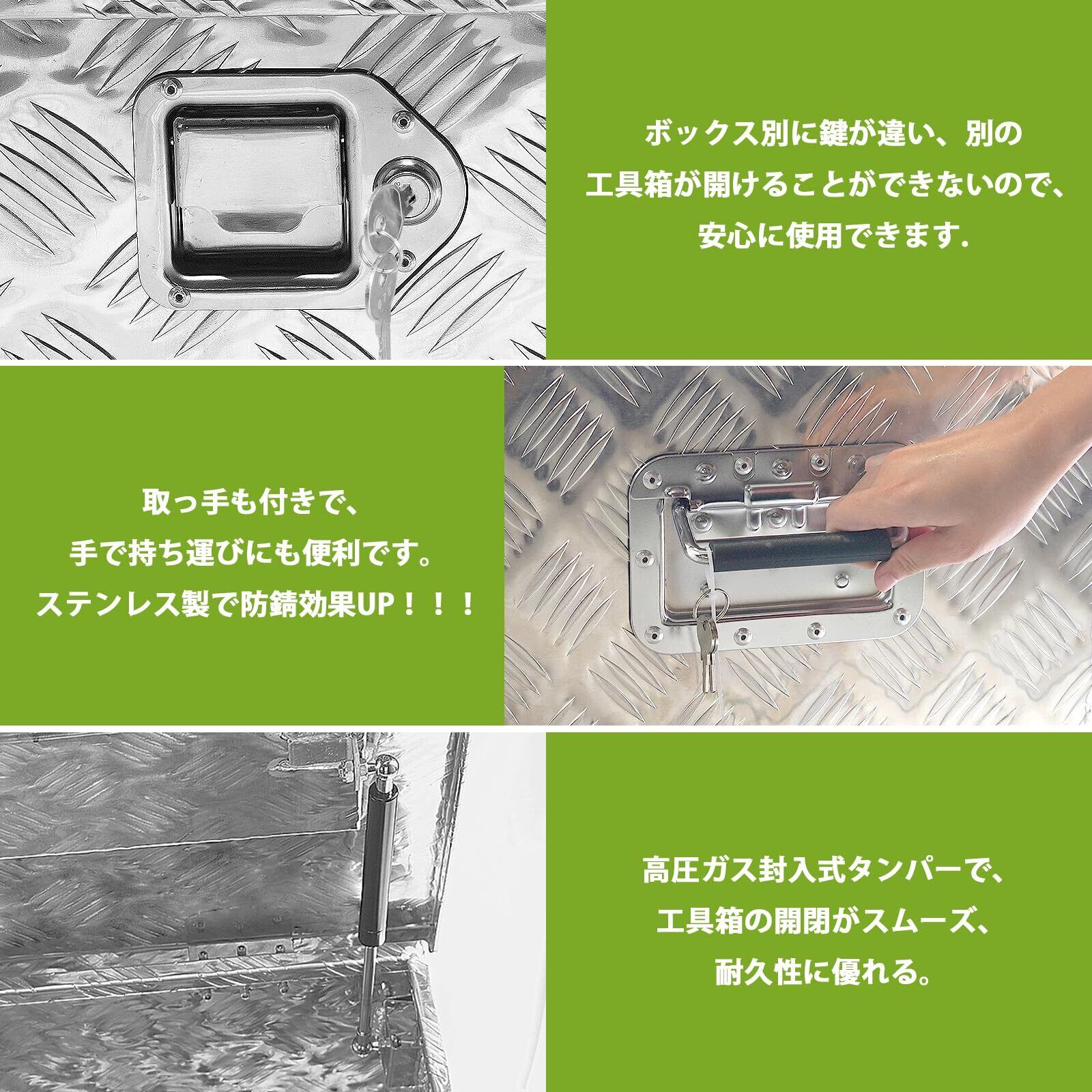 【取っ手・鍵・タンパー付き】ボックス別に鍵が違います、別の工具箱が開けることができませんので、安心に使用できます。高圧ガス封入式タンパーで、工具箱の開閉がスムーズ、耐久性に優れ。取っ手も付きで、手で持ち運びにも便利です。