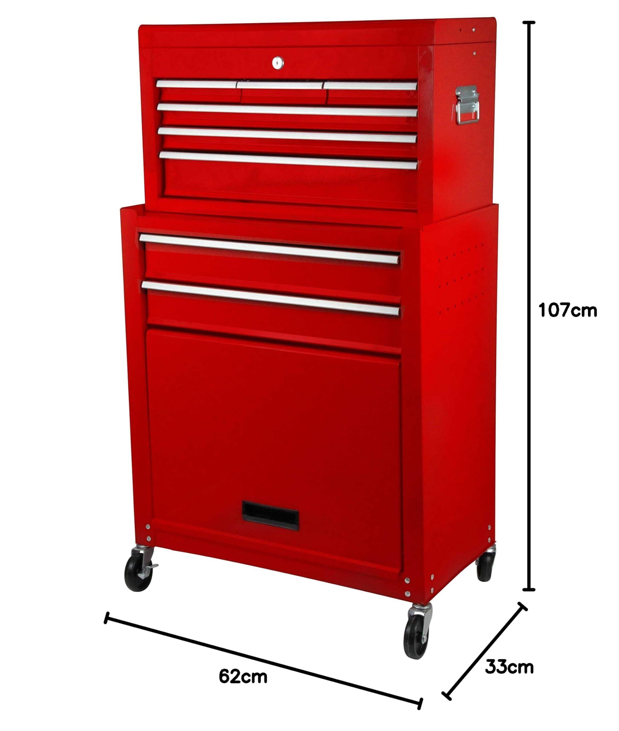 セットサイズ(トップチェストをローラーキャビネットに設置した場合):幅620×奥330×高さ1070mm、セット重量:27.5kg、鉄板厚:0.7mm