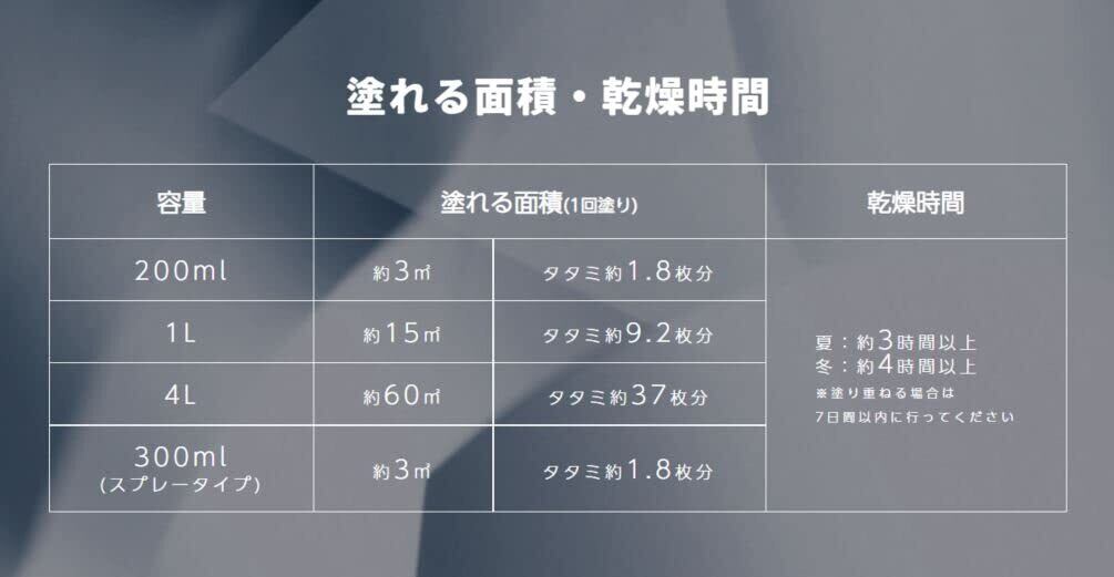 【塗り面積(1回塗り)】:約3㎡(タタミ約1.8枚分)