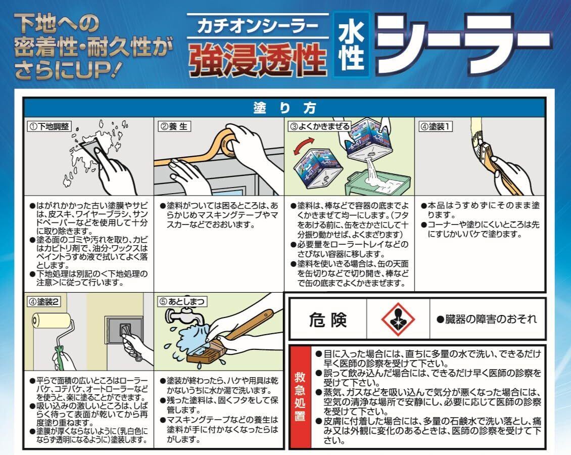 注意事項:※頻繁に水がかかるところ、いつも湿っているところ、アスファルト面、劣化の激しい下地には使用できません。 ※ 劣化が激しく、手で触ってボロボロと砂のように取れるような場合には充分な効果が得られませんのでアサヒペン油性シーラーを使用してください。 ※本品は下塗り用塗料です。必ず上塗りをしてください。上塗りには水性塗料を使用してください。 ※モニエル瓦には使用できません。