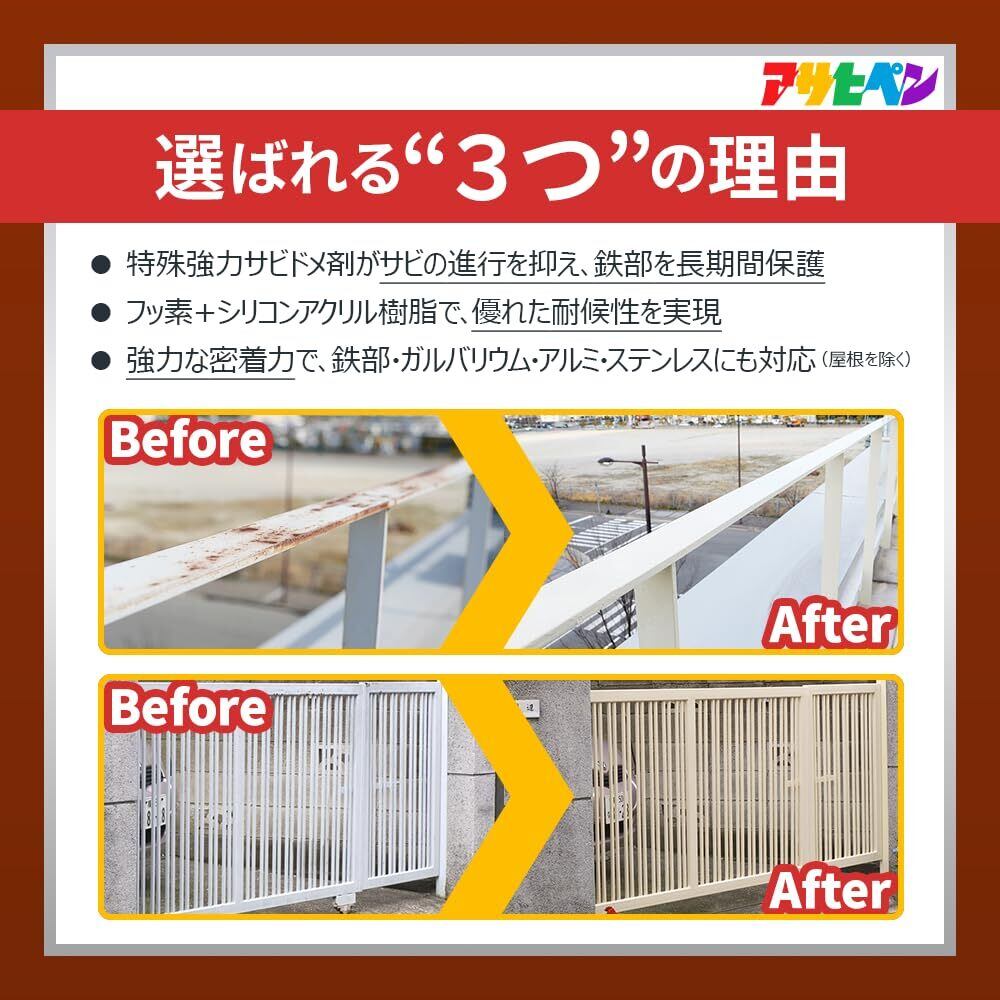 アサヒペン 塗料 ペンキ 水性高耐久鉄部用 3L 白 水性 サビの上からそのまま塗れる ツヤあり 低臭 サビドメ剤配合 特殊フッ素樹脂配合 紫外線劣化防止剤配合 日本製