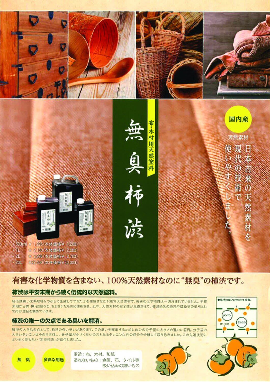 木材・布用の天然塗料・染料です。日本古来の「柿渋」を使いやすく、唯一の欠点、臭いを解消しました。