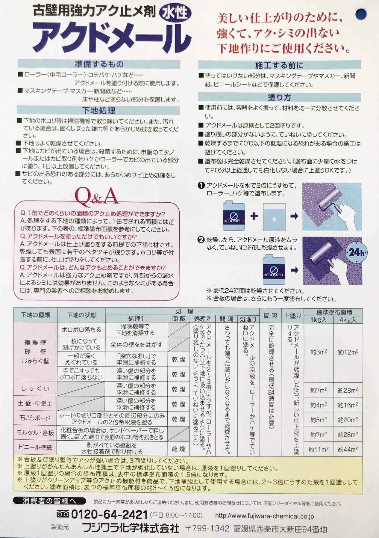 フジワラ化学 内装用 古壁用強化アク止め材 アクドメール 4Kg