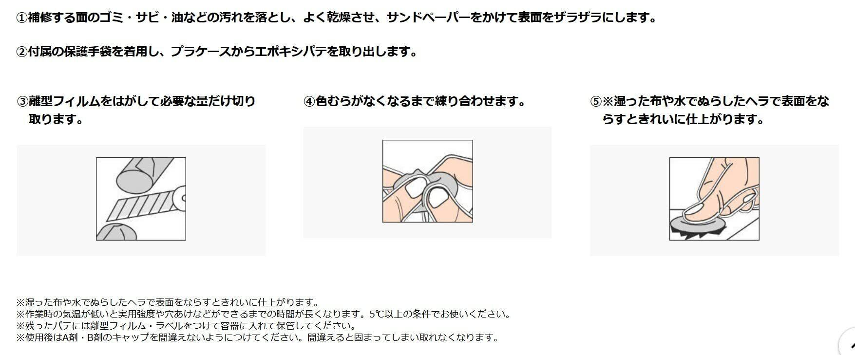 ・主剤と硬化剤を練り合わせて使用し、硬化後は塗装ができる