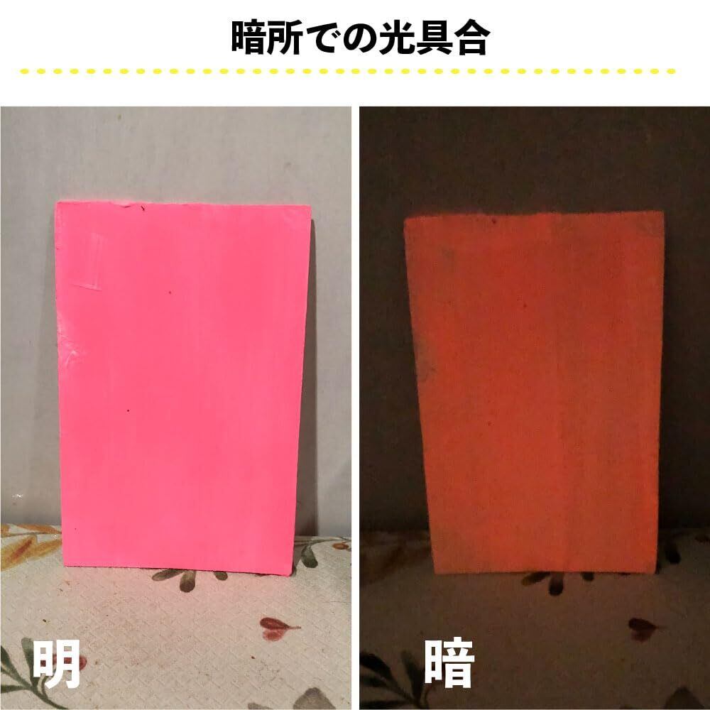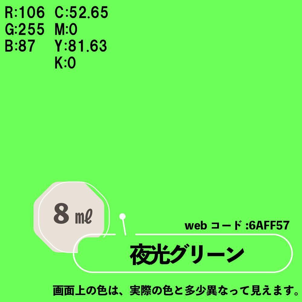 【特長】 ■[絵具の様に使えるペンキ]簡単・便利・コンパクトな水性工作用塗料。使いたい量だけ出して使用する事が出来ます。■[2種類の形]絵具のように使えるチューブタイプと、ササッと塗れるマニキュアタイプの2種類ございます。■[使いやすいペンキ]臭いが少なく、乾燥が速く、塗り易い水性塗料です。■[チューブの30mlにはアタッチメントも]30mlタイプに使用可能な専用アタッチメントがあります。■[目立ちます]昼間は鮮明な蛍光色、夜は暗闇でソフトな光を発します。■[光をあてる時間]光を3~5分程度当てると暗闇で15分程度発光します■[当てる光の種類]照射する光は、蛍光灯・水銀灯・紫外線ランプ(ブラックライト)などの波長の短い光が有効です。■[下塗りを塗ると]蛍光塗料・夜光塗料の下塗りを使用することで、より鮮明に発色します。