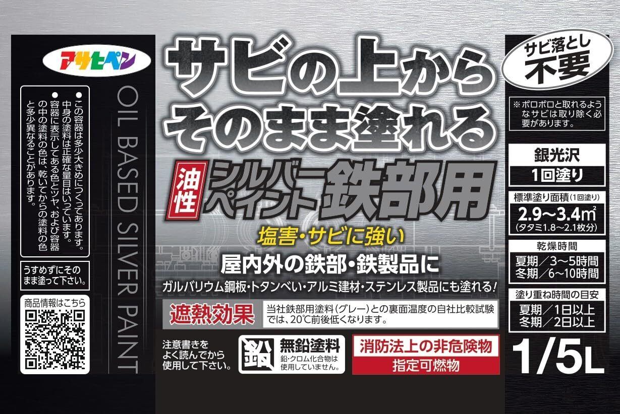 アサヒペン 塗料 ペンキ 油性シルバーペイント 鉄部用 1/5L シルバー 油性 サビの上からそのまま塗れる 1回塗り ツヤあり 塩害・サビに強い 遮熱効果 アルミニウムペイント 非危険物(消防法上) 日本製