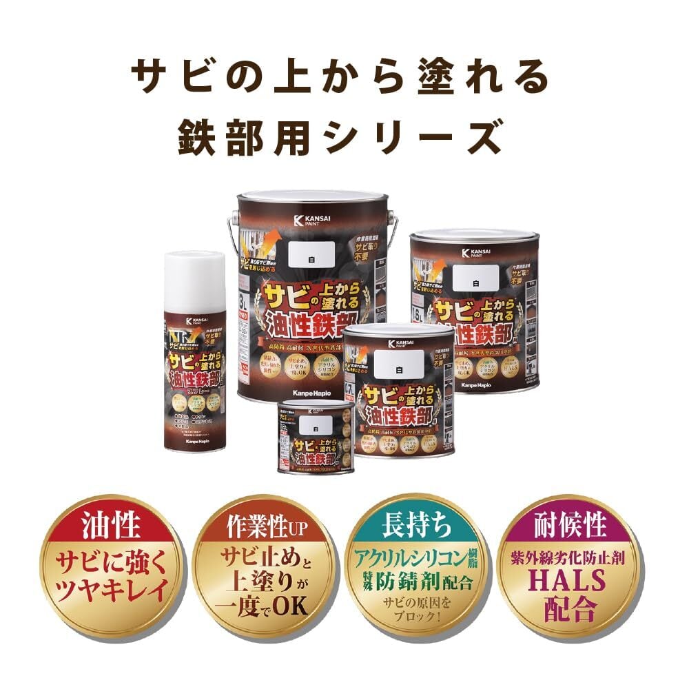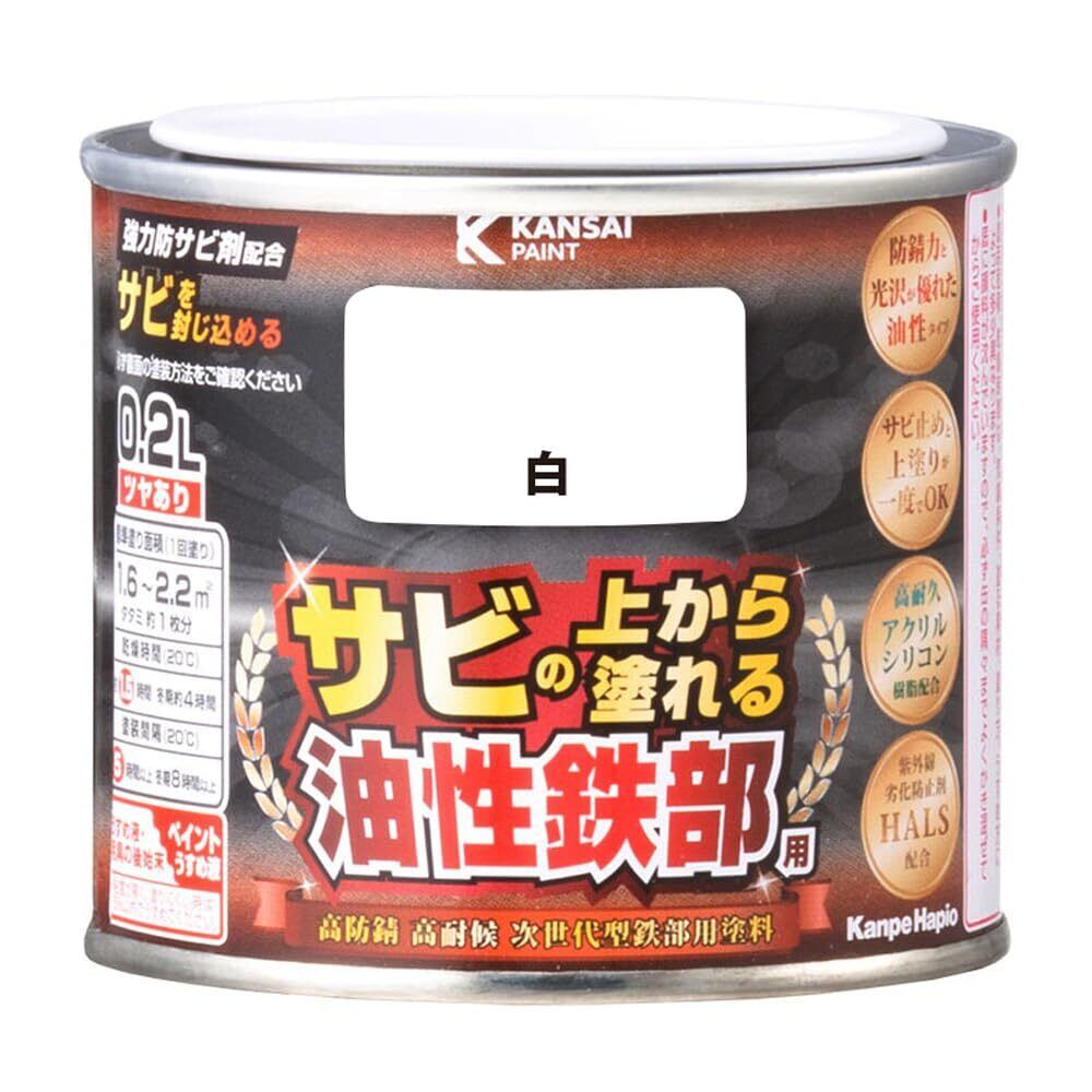 カンペハピオ ペンキ 塗料 油性 つやあり 鉄部用 高耐久 防サビ サビの上から塗れる 油性鉄部用S 白 0.2L