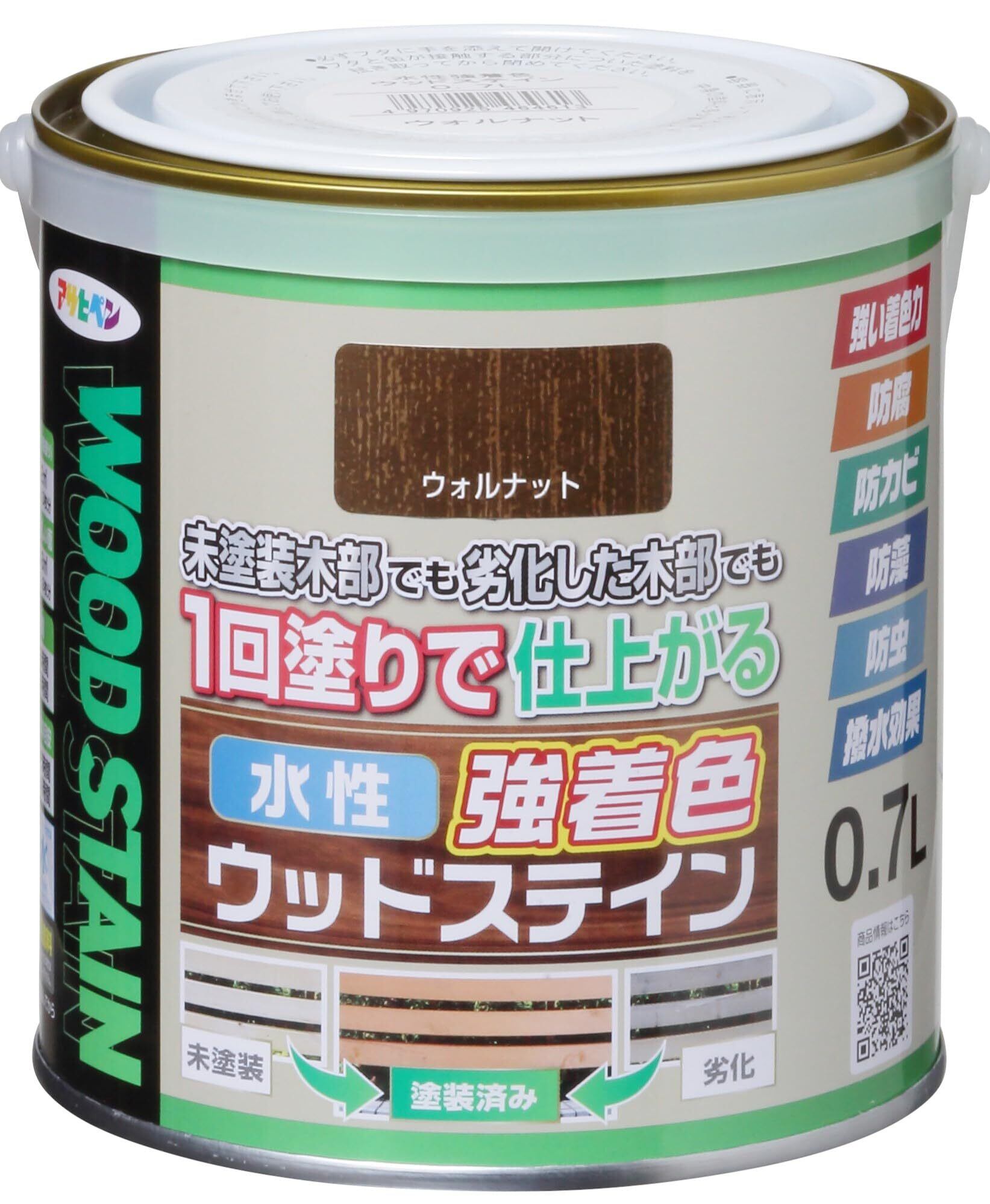 アサヒペン 塗料 ペンキ 水性強着色ウッドステイン 0.7L ウォルナット 水性 木部用 1回塗り 低臭 塗りやすい 日光や雨に強い 耐候性 はっ水 美しく保つ 木部保護 防カビ 防虫 防腐 防藻 時短 経済的 ステイン仕上げ 劣化した木部もきれいに仕上がる 塗り替え 日本製 | KSショップ