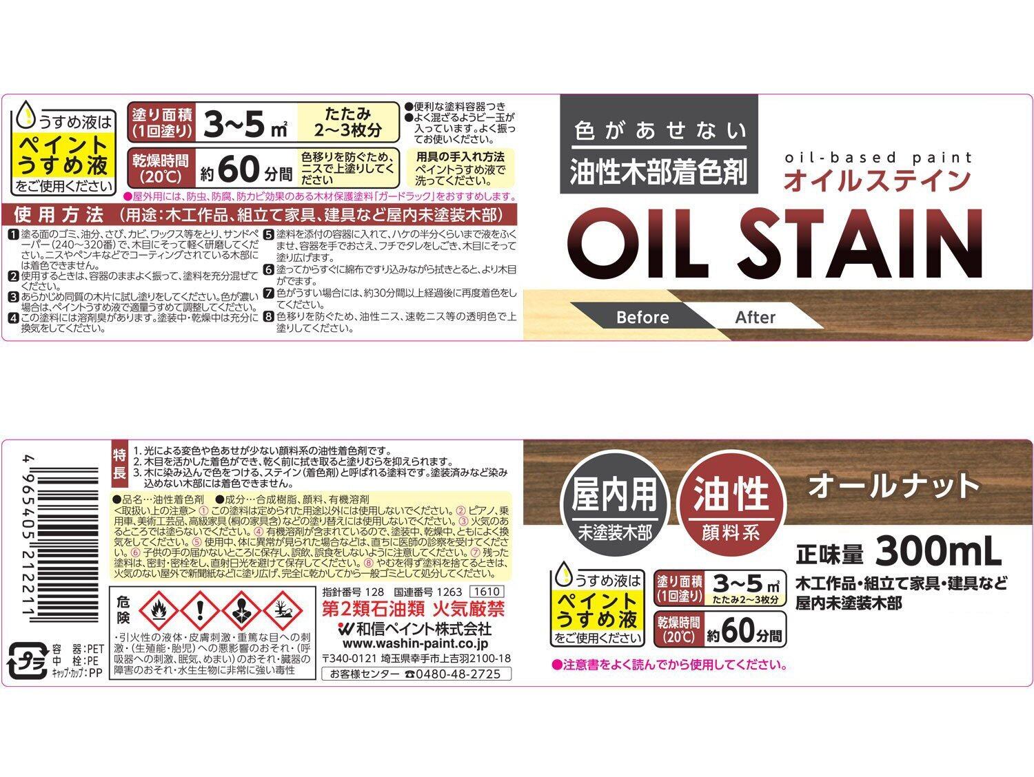 和信ペイント(Washi Paint) 油性オイルステイン むら無く着色・木目鮮明 オールナット 300ml