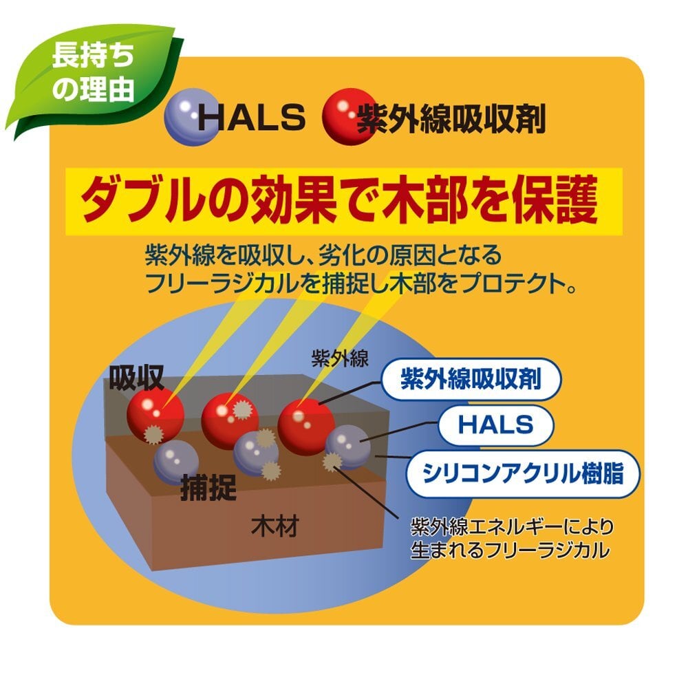 用途:ウッドデッキ、ラティス、ベンチ等、屋外の木部や木製品の半透明仕上げ