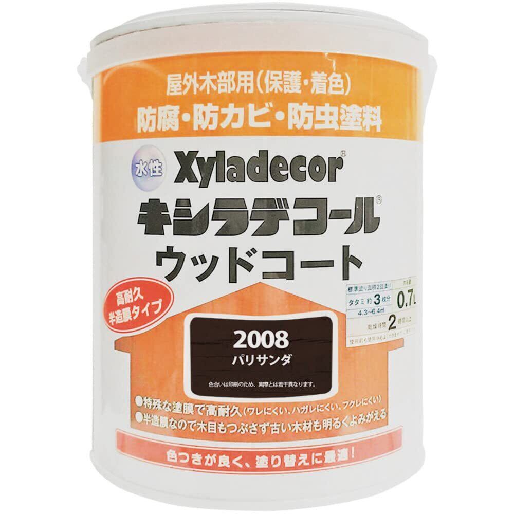 【特長】 ■[トップブランド]発売以来45年以上の実績を持つトップブランド「キシラデコール」の水性+半造膜タイプ。 ■[半造膜タイプ]表面に塗膜を作り、着色する「造膜性能」 内部に浸透し保護する「浸透性能」の2つを兼ね備えた半造膜タイプ ■[内側と外側から保護]塗膜 : 柔軟性 / 密着性 / 気密性 浸透した成分 : 防腐 / 防カビ / 防虫 ■[木目を生かしたキレイな仕上り]半造膜なので木目をつぶさず、古い木材も明るく甦ります。摩耗が多いウッドデッキなどの塗り替えにも最適。 ■[使いやすいペンキ]水性だから臭いが少なく作業性抜群。用具の後始末も水でOK。