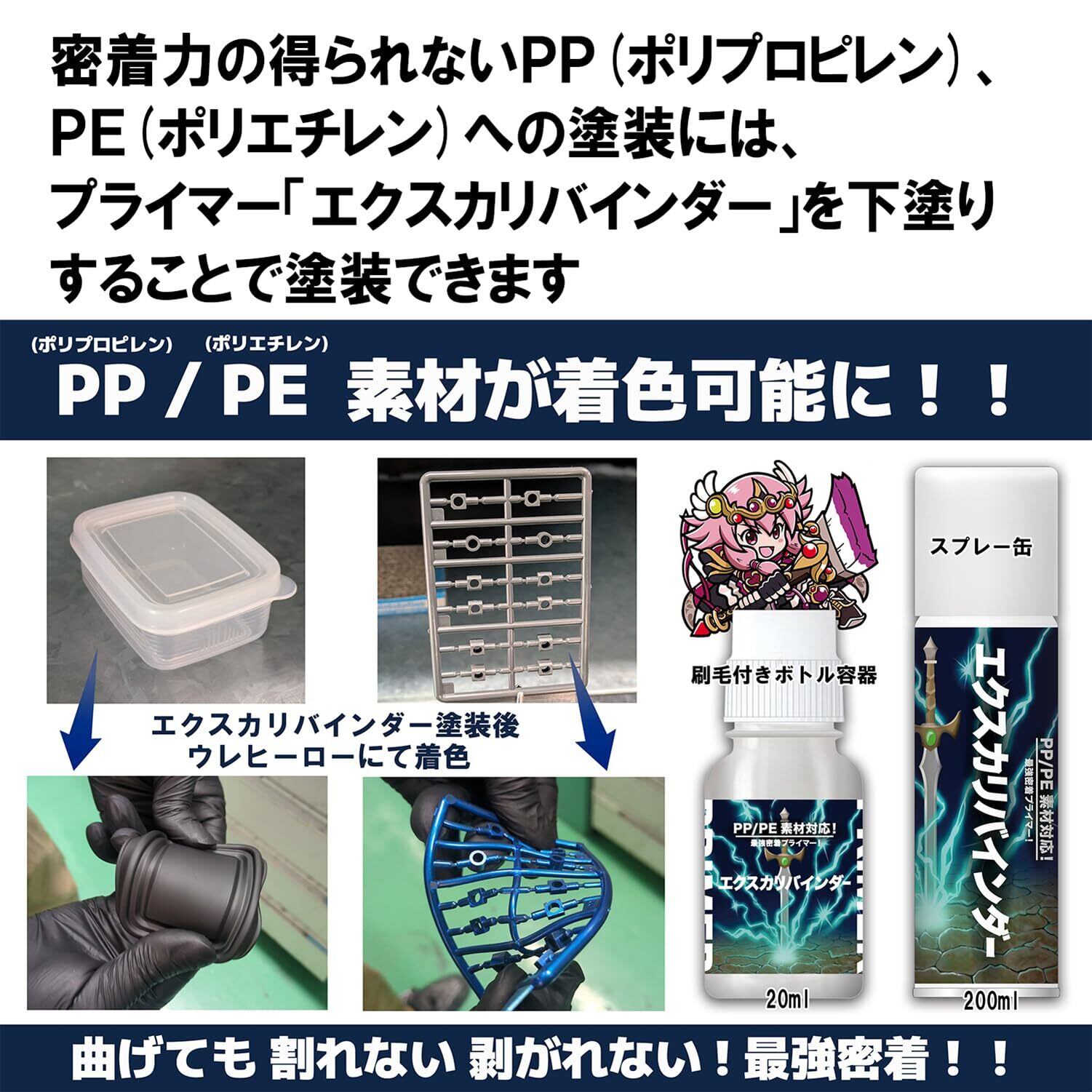 ・PPやPEという密着が難しいプラスチックを密着させるプライマー