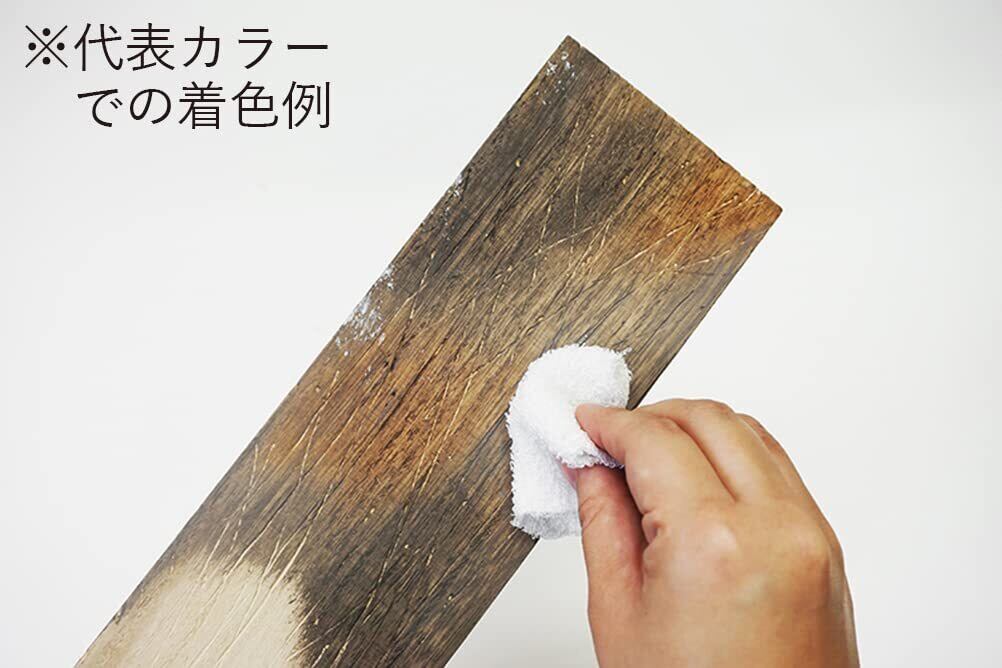 嫌なにおいが少なく気軽に使え、塗りこむことで木の保護と着色が同時におこなえます