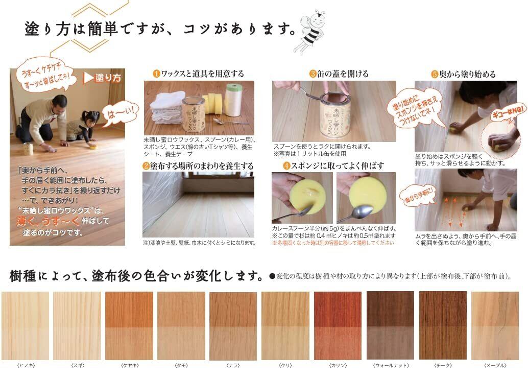 ●通常、マンションなどに使われる化学塗装フローリングには使用できません。●化学塗料仕上げのものにも使用できません。●既製品に塗布する場合は、事前にお問い合わせください。