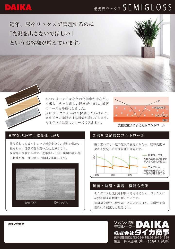 ダイカ【業務用】低光沢ワックス セミグロス 4kg つや消しマット系フローリング対応