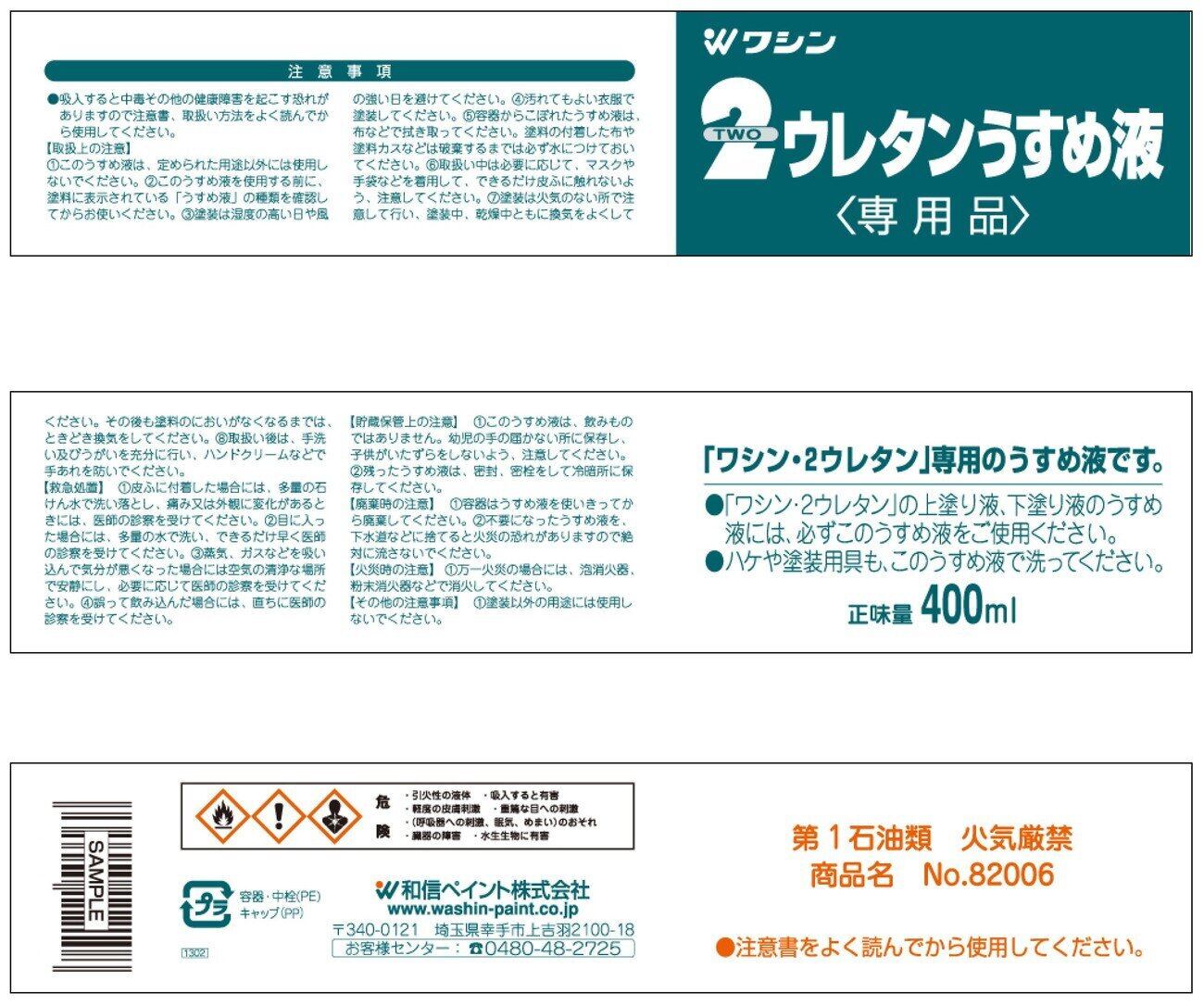 和信ペイント 2ウレタン専用うすめ液 400ml