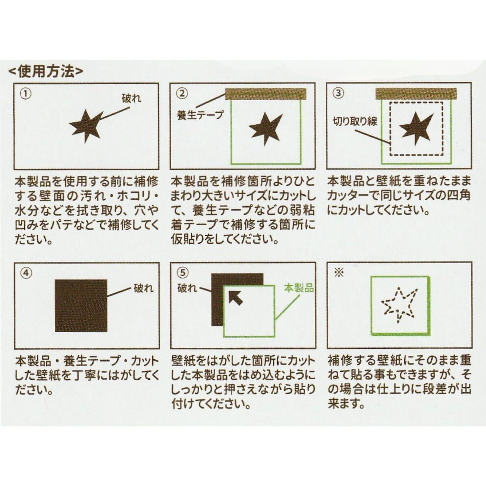 【簡単補修】壁にできた傷、破れを素早く簡単に修復できる便利な壁紙補修用シールです。接着剤や工具を必要とせず、手軽にお使いいただけます。
