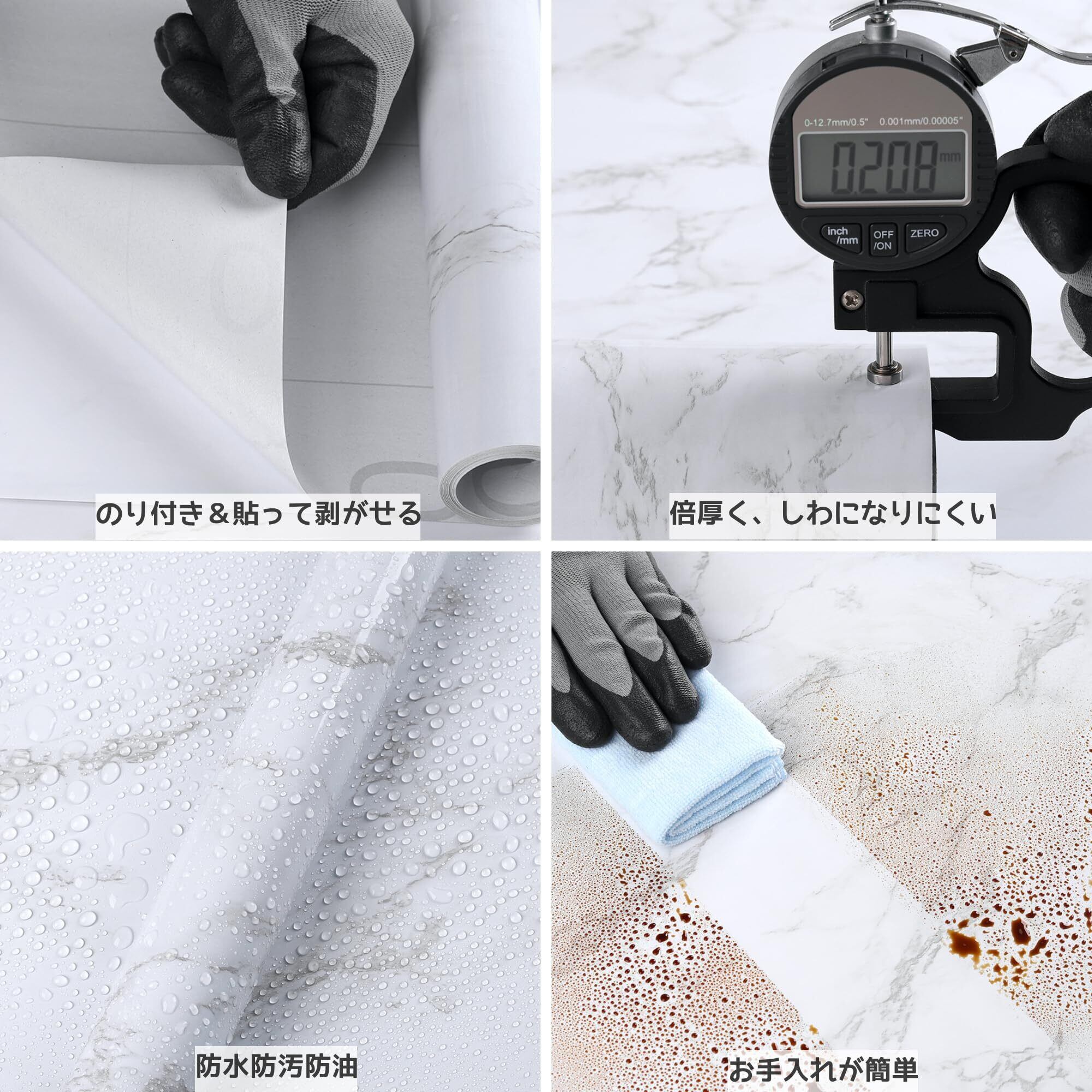 【高級感&実用性】大理石風のデザインがエレガントな空間を演出し、ストーン調の仕上がりがどんな室内にも高級感を加えます。つるつるしており、光沢があり、大理石柄で立体感が溢れる仕上がり!一般的な製品よりもシワやバブルができにくく、簡単にリフォームシールが可能です。