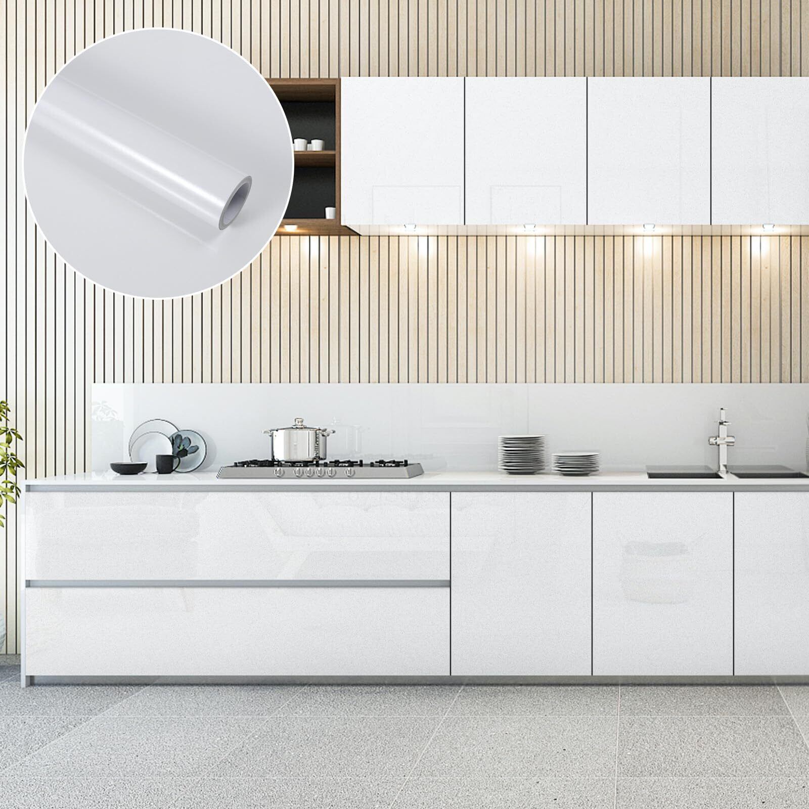 practicalWs リメイクシート 白 光沢 壁紙シール 補修 防水 耐熱シート 壁紙の上から張る つるつる ダイノックシート キャビネット・ドア・壁・テーブル天板・キッチン 多用途 DIY用 透けない かべがみ おしゃれ 40X300cm