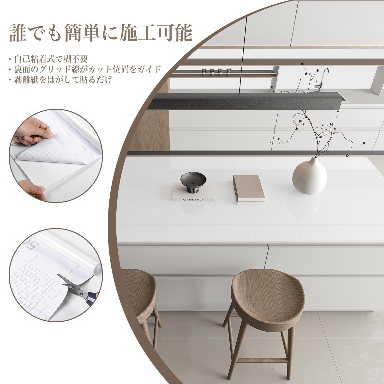 practicalWs リメイクシート 白 光沢 壁紙シール 補修 防水 耐熱シート 壁紙の上から張る つるつる ダイノックシート キャビネット・ドア・壁・テーブル天板・キッチン 多用途 DIY用 透けない かべがみ おしゃれ 40X300cm | KSショップ