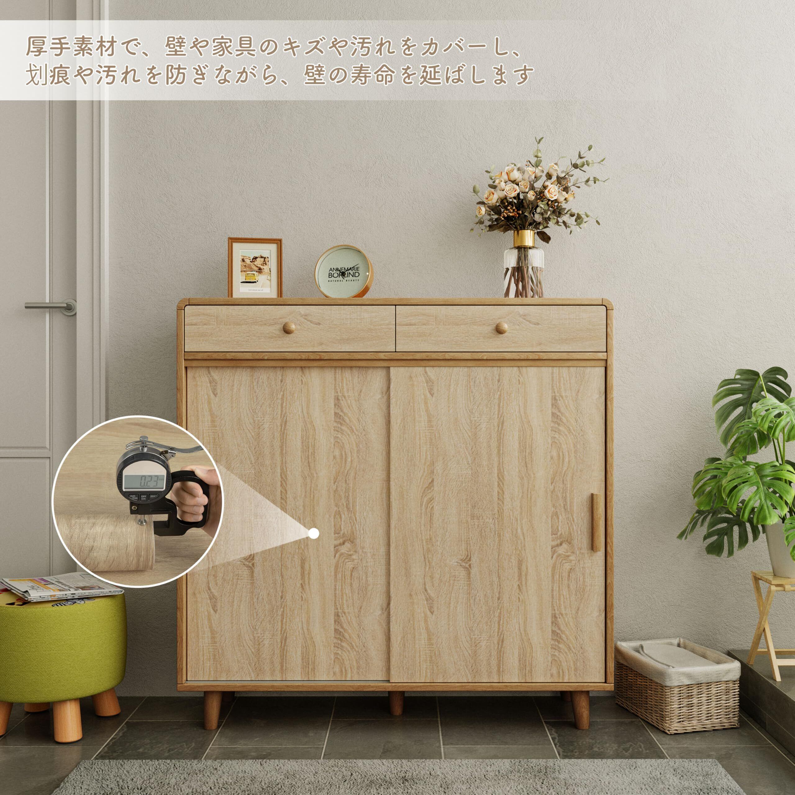 高品質素材:耐スクラッチ、耐摩耗性に優れた不浸透性基材を使用します。中位の厚さで家具の元の色をしっかりカバーします。汚れが目立ちにくいのが特徴です。水性粘着剤技術を採用して、初期の粘着力は調整しやすくて、貼り付け時間が長くなるほど粘着力が強くなります。コーナー部分はドライヤーで加熱すると柔らかくなり、より密着度がアップします。壁紙を貼る際の注意点:ほこりや水汚れがないように、貼る前に壁をしっかり掃除してください。これにより、壁紙の寿命が延び、粘着力も向上します