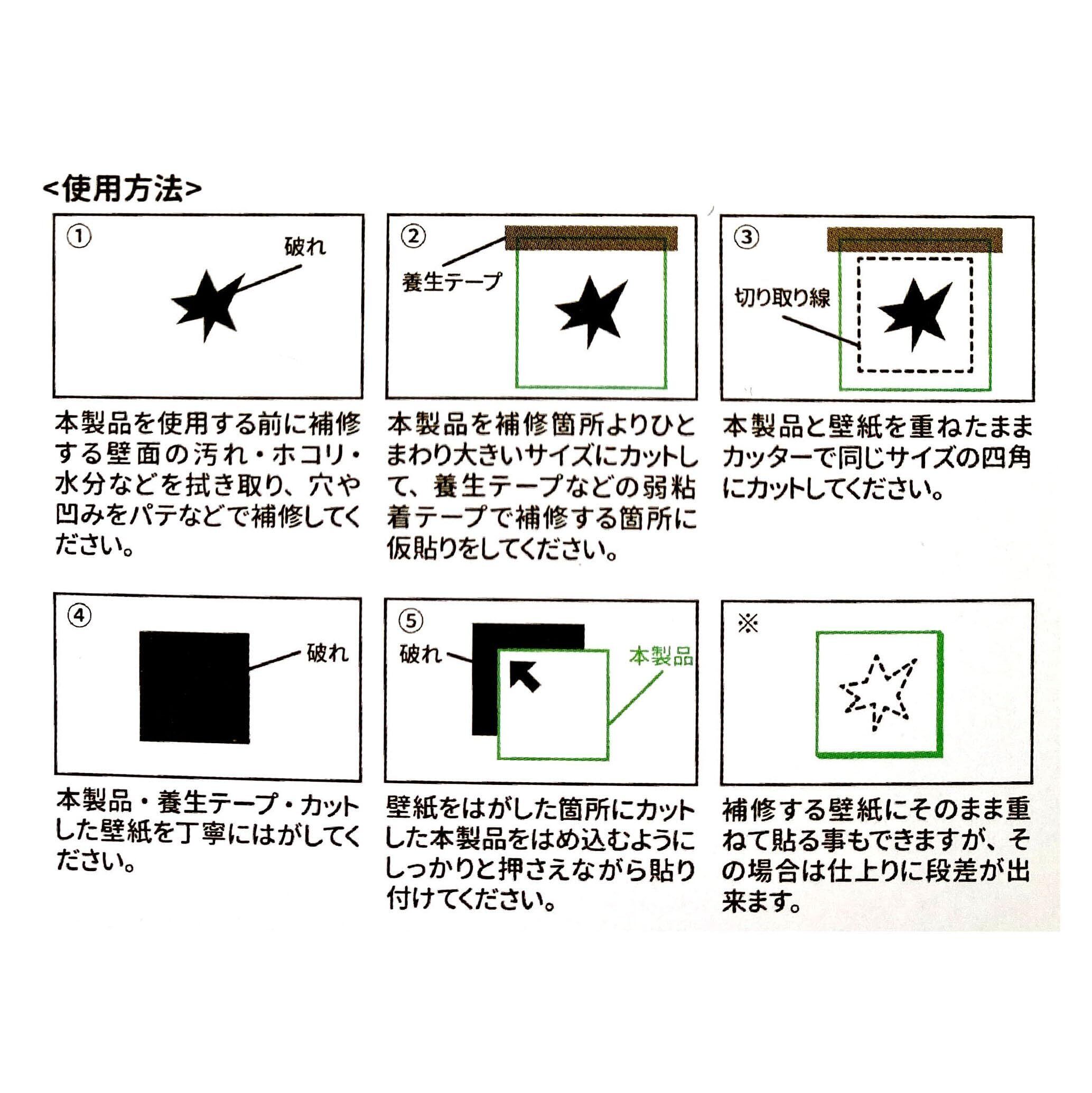 壁紙の汚れた部分や破れの補修にカットしてお使いください。シールタイプなのでピタッと貼るだけ簡単です。