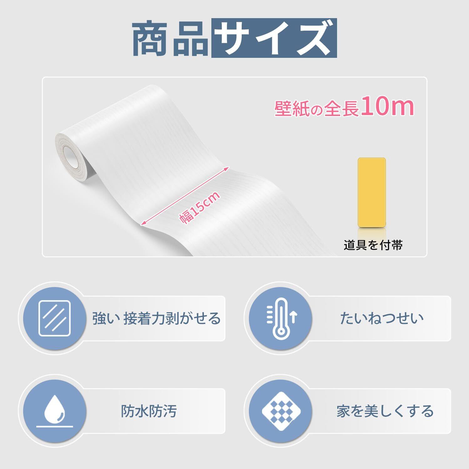 マスキングテープ 木目 テープ 白 リメイクシート 幅15cm × 長さ10m 防水 木目シート 巾木シート 木口テープ 厚手 窓枠用リメイクシート 木目 補修テープ はがせる壁紙 インテリアテープ 木目 幅広 家具用リメイクシート 簡単 diy 窓枠、ドア枠、引き戸、巾木、壁、洗面所、浴室などに使用(道具を付帯)