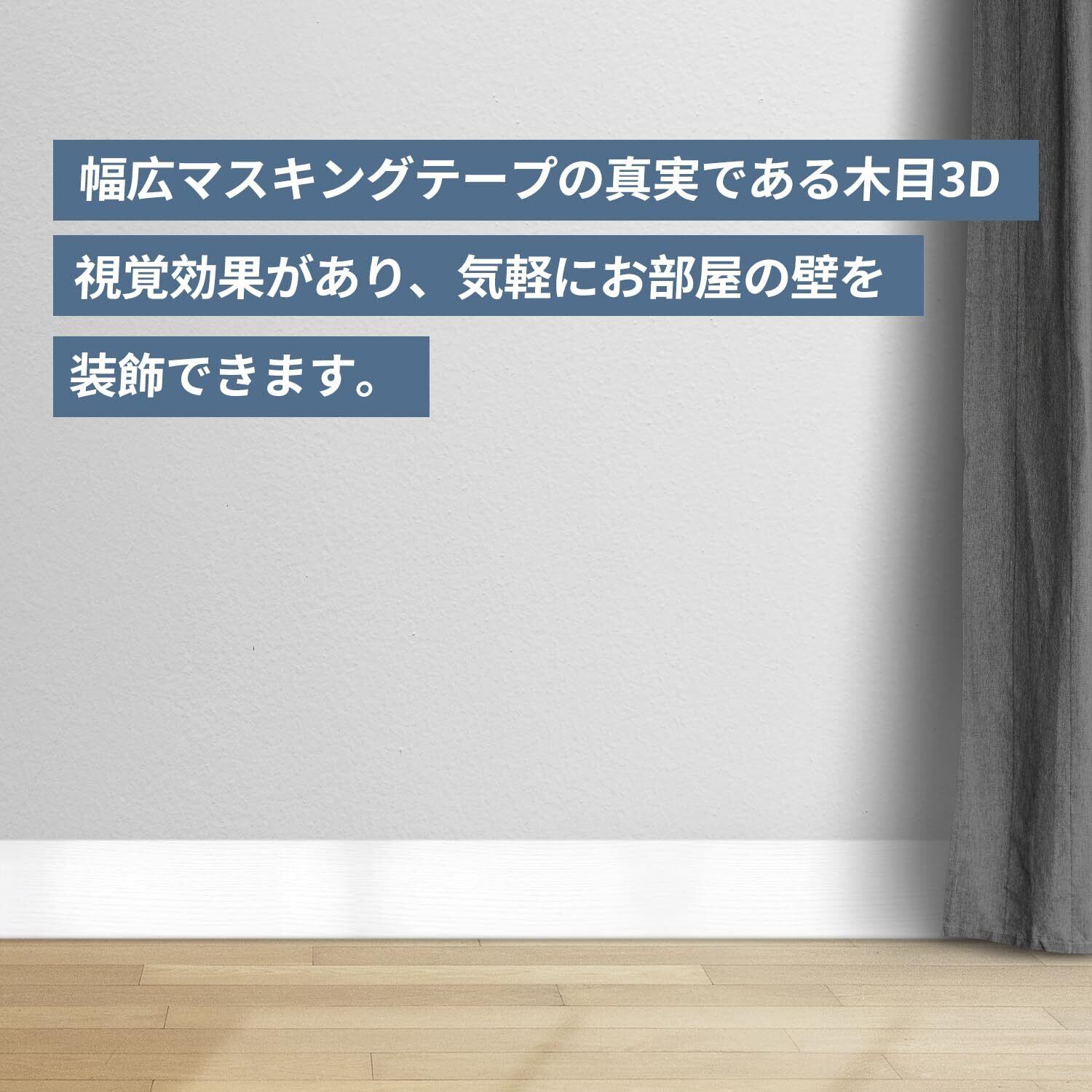 【用途広い、家具や壁をリフォームする】幅広マスキングテープの真実である木目3D視覚効果があり、気軽にお部屋の壁を装飾できます。壁、窓枠、巾木、襖や扉、ドア枠、引き出し、本棚、古い家具、玄関、リビング、キッチン、トイレ、お風呂、洗面所などの場所に使用できます。お気軽にお部屋の模様替え、気分転換を楽しめましょう!