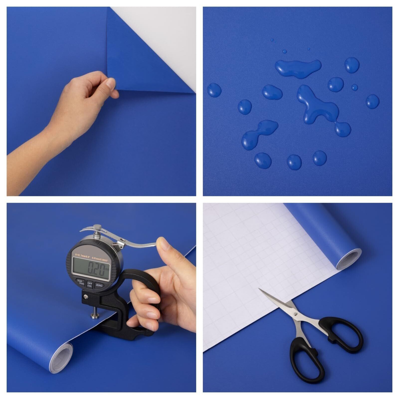 リメイクシート 青【自己粘着性】リメイクシートは自己粘着で、追加の接着剤がなく、ただ剥がして貼り付けるだけです、裏面にグリッド線があり、測定とカットが簡単で、ハサミで必要なサイズと形にカットすることができます。(注:2〜3センチ余分に切ることをお勧めします)