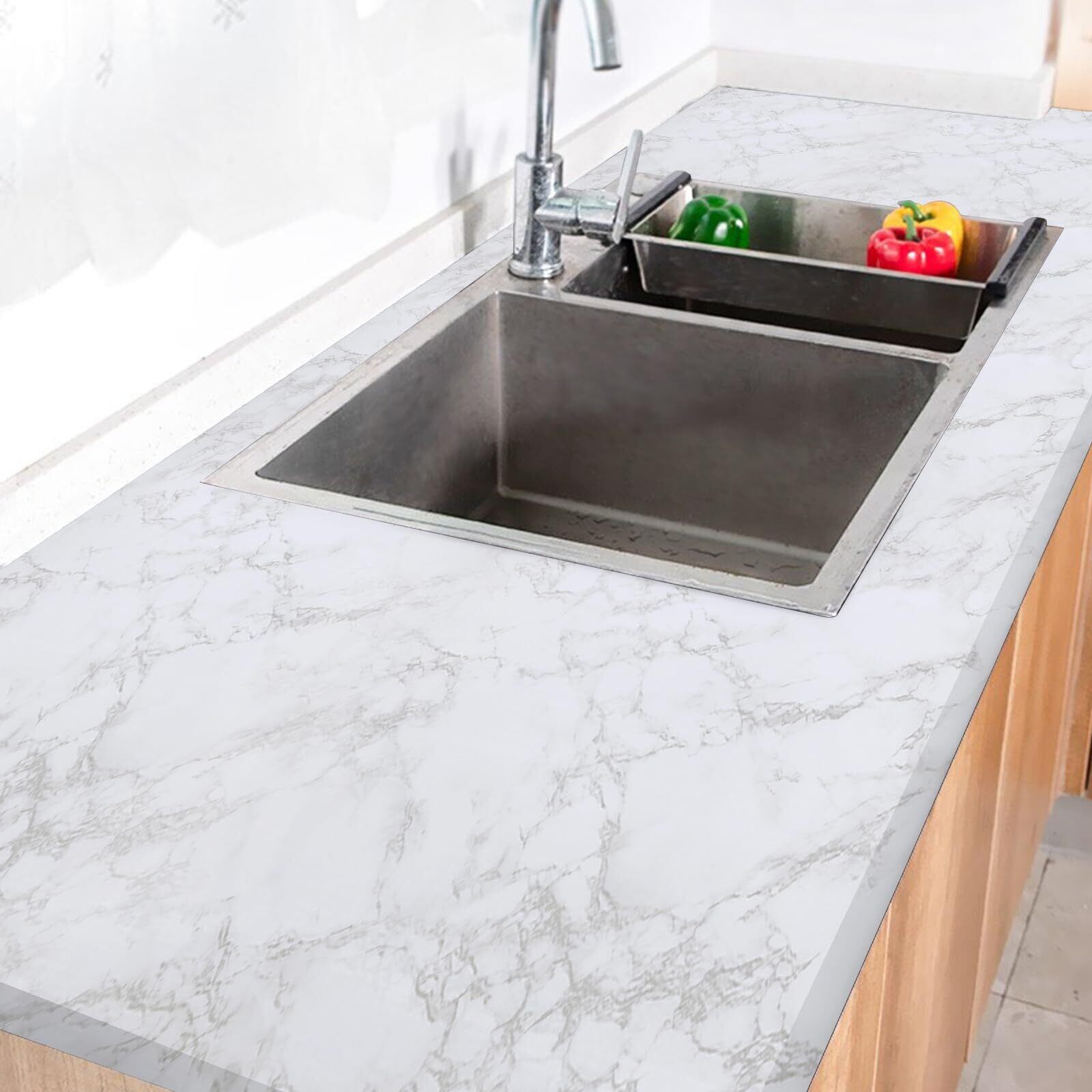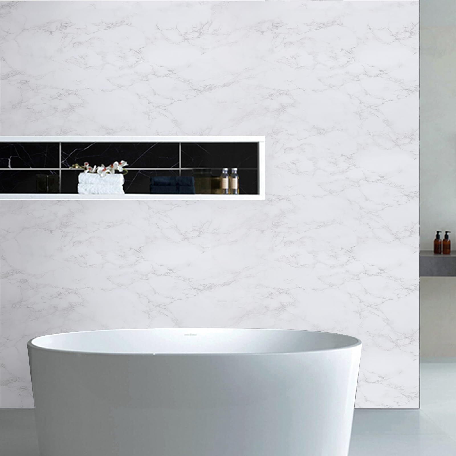 【リアルな大理石の質感】 リアルな大理石模様、白地にグレーのテクスチャーで、高級感があり、豪華でエレガントなインテリア空間を演出。防水性加工で、汚れや油に強い、厚手で耐久性があり、シワや気泡が入りにくく、初めての方でも簡単に施工できます。滑らかな表面は、お手入れが簡単です。