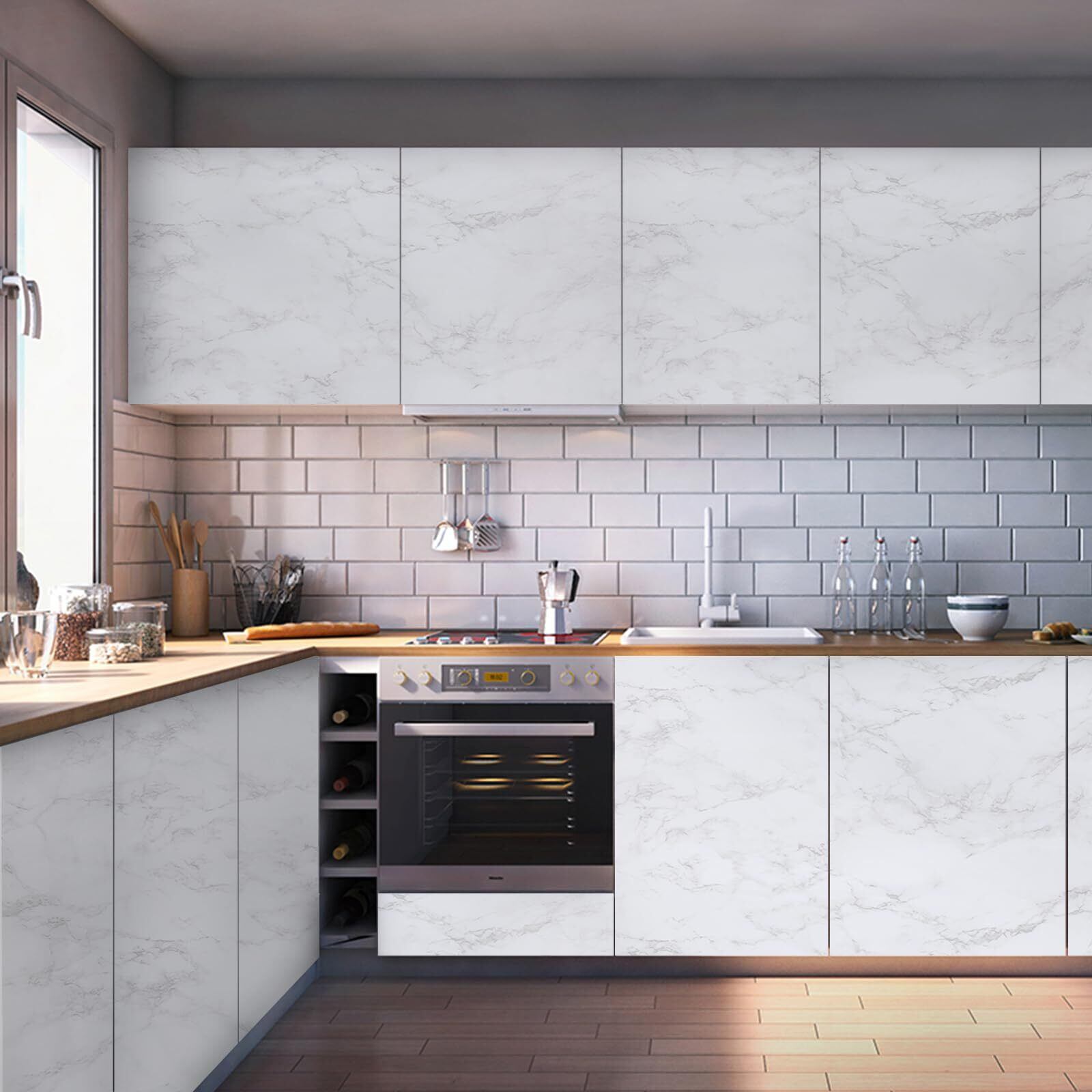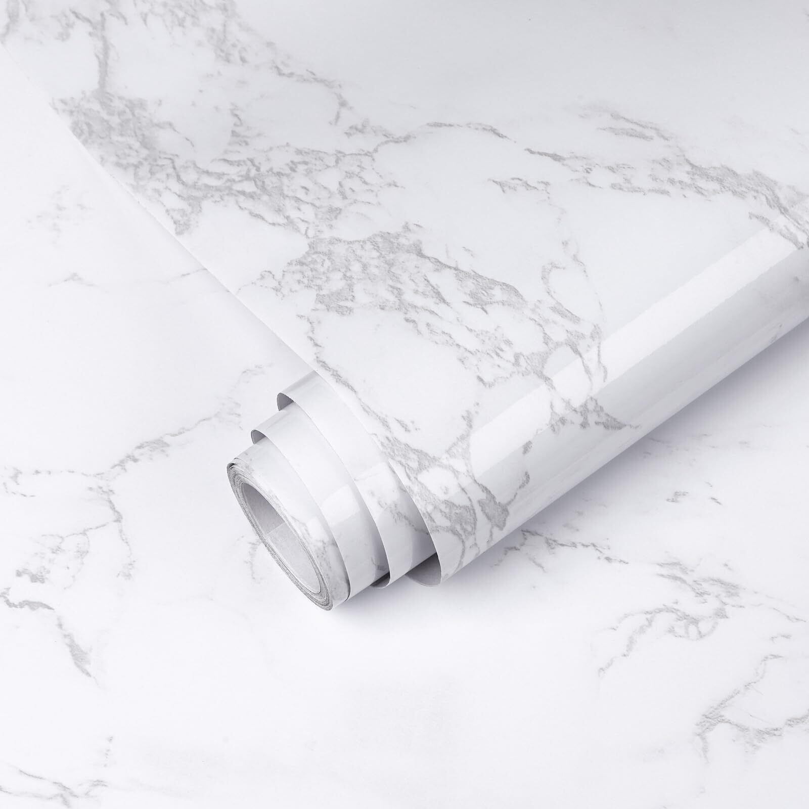 Cosnight 壁紙シール 大理石 シート リメイクシート 40cmX3m 厚手 防水防油 耐热 大理石調 光沢 貼って剥がせる壁紙 おしゃれ 浴室 キッチン トイレ テーブル 家具 リフォーム用(白・グレ )