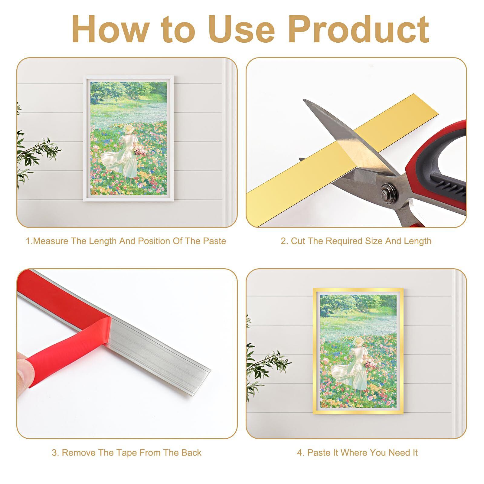 【広く使用されています】粘着壁ボーダーストリップは、タイル、ガラス、プラスチックなど、ほぼすべての滑らかな表面に接着でき、フレーム、床、壁、床、ドア、天井、ドア、鏡などに適しており、家をよりエレガントで美しくします