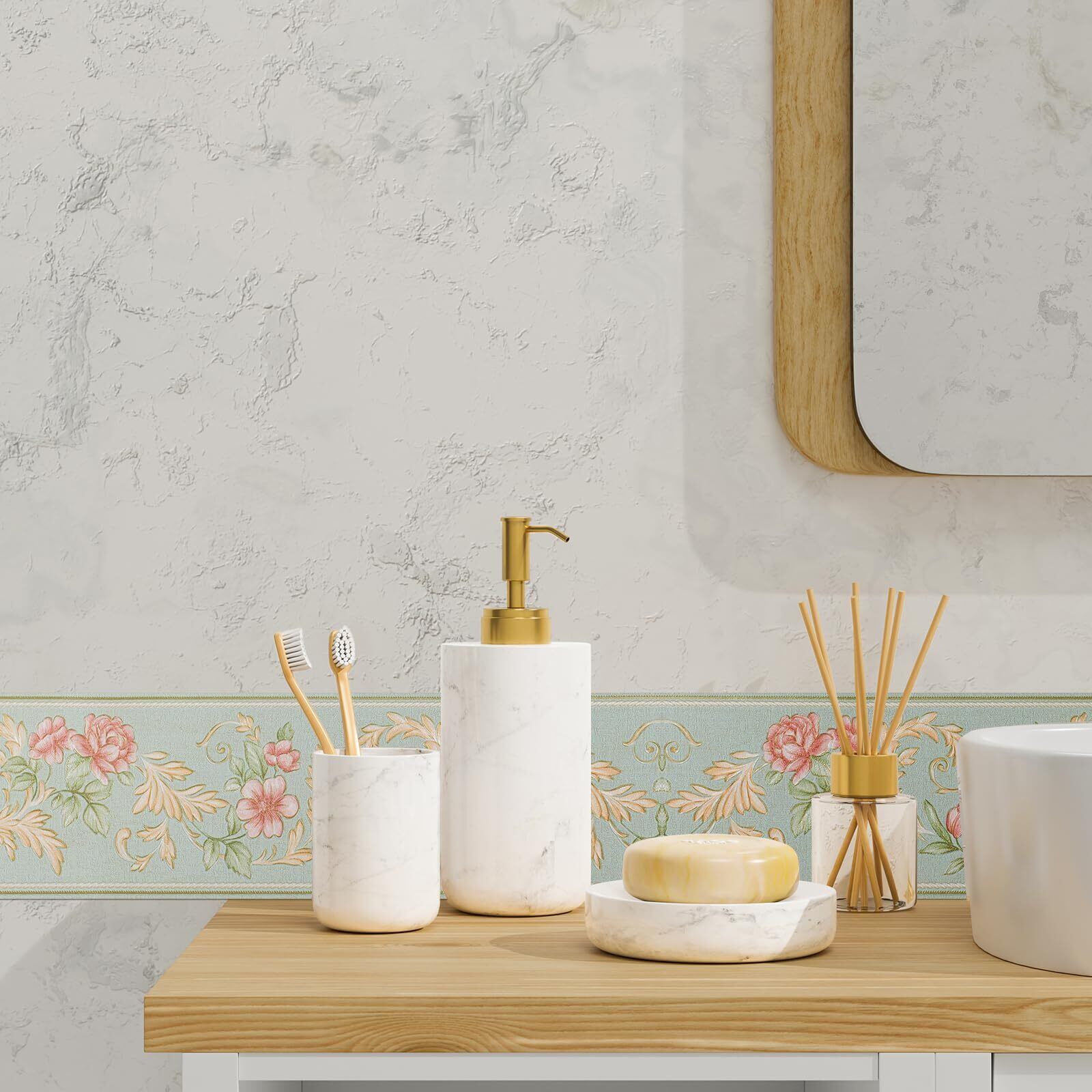 トリムボーダー ライトグリーン 10cm×5m 壁紙シール リフォームシート ローズモチーフの刺繍 インテリアシール はがせる きれい リメイクシート ウォールステッカー 壁紙 補修 テープ 3d 立体 浮彫 凹凸 腰壁 マスキングテープ 洗面所 窓 窓枠 ドア 枠 巾木 和風 テーブル 家具 おしゃれ 北欧