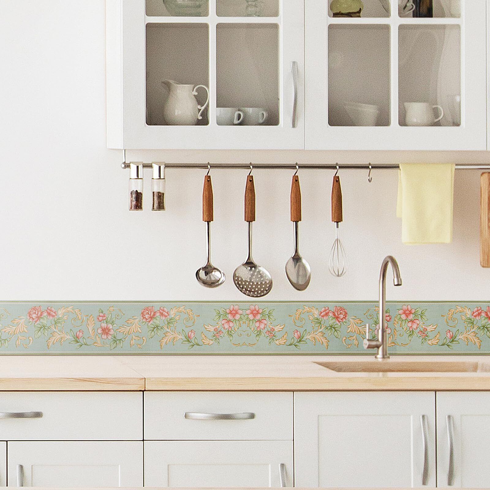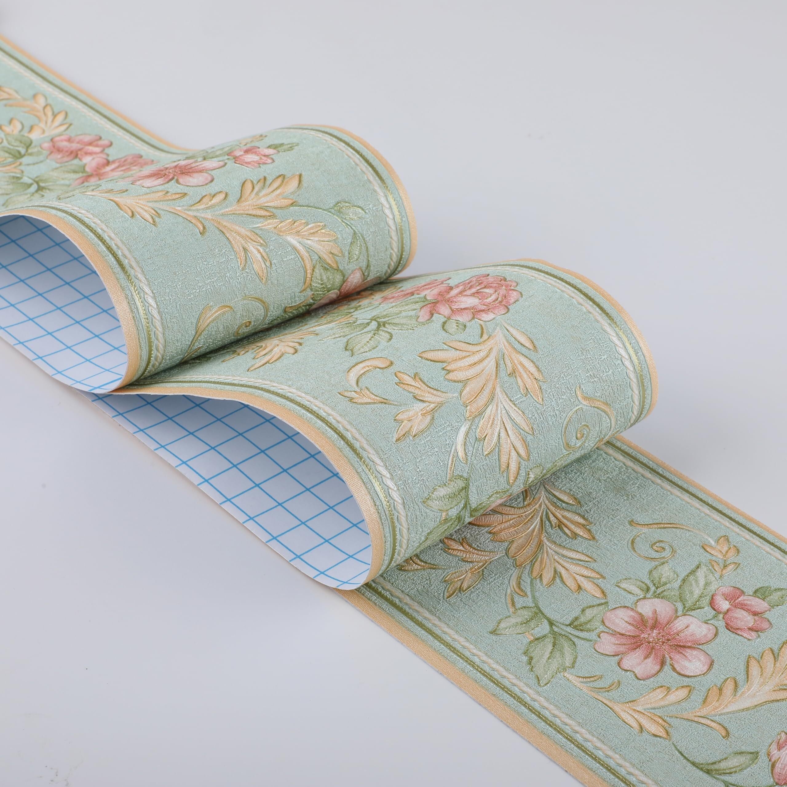 トリムボーダー ライトグリーン 10cm×5m 壁紙シール リフォームシート ローズモチーフの刺繍 インテリアシール はがせる きれい リメイクシート ウォールステッカー 壁紙 補修 テープ 3d 立体 浮彫 凹凸 腰壁 マスキングテープ 洗面所 窓 窓枠 ドア 枠 巾木 和風 テーブル 家具 おしゃれ 北欧 | KSショップ