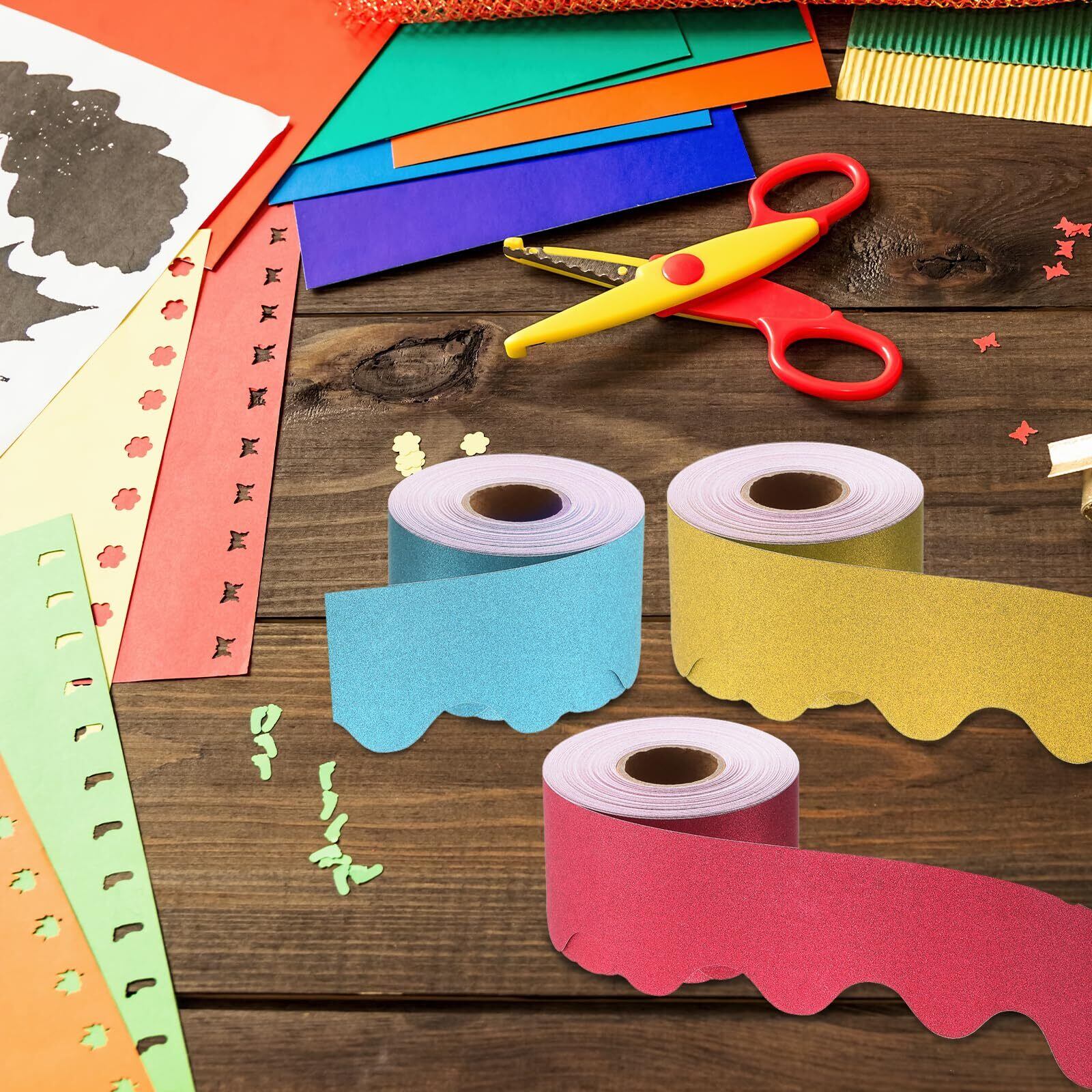 掲示板ボーダーの適用は簡単です!必要な長さを測定して切り、その後、接着剤を使用してボーダートリムを掲示板、ホワイトボード、または他の表面に固定します。紙素材の柔軟性により、簡単に形作りや配置ができ、シームレスな仕上がりをします。プレ ーンなボードを目を引くディスプレイに変えるための迅速かつ効果的な方法です。