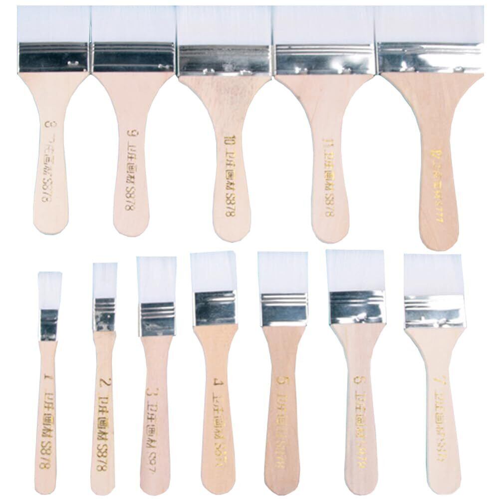 多用途刷毛 12サイズセット ペイント刷毛 ナイロンブラシ 木製ハンドル ペイント刷毛 ナイロンブラシ 木製塗装ブラシ 掃除 家具の塗装 水彩画 デザイン画 落書き用筆 バーベキュー塗料 塗装修理に最適 水性 油性塗料兼用(ホワイト)
