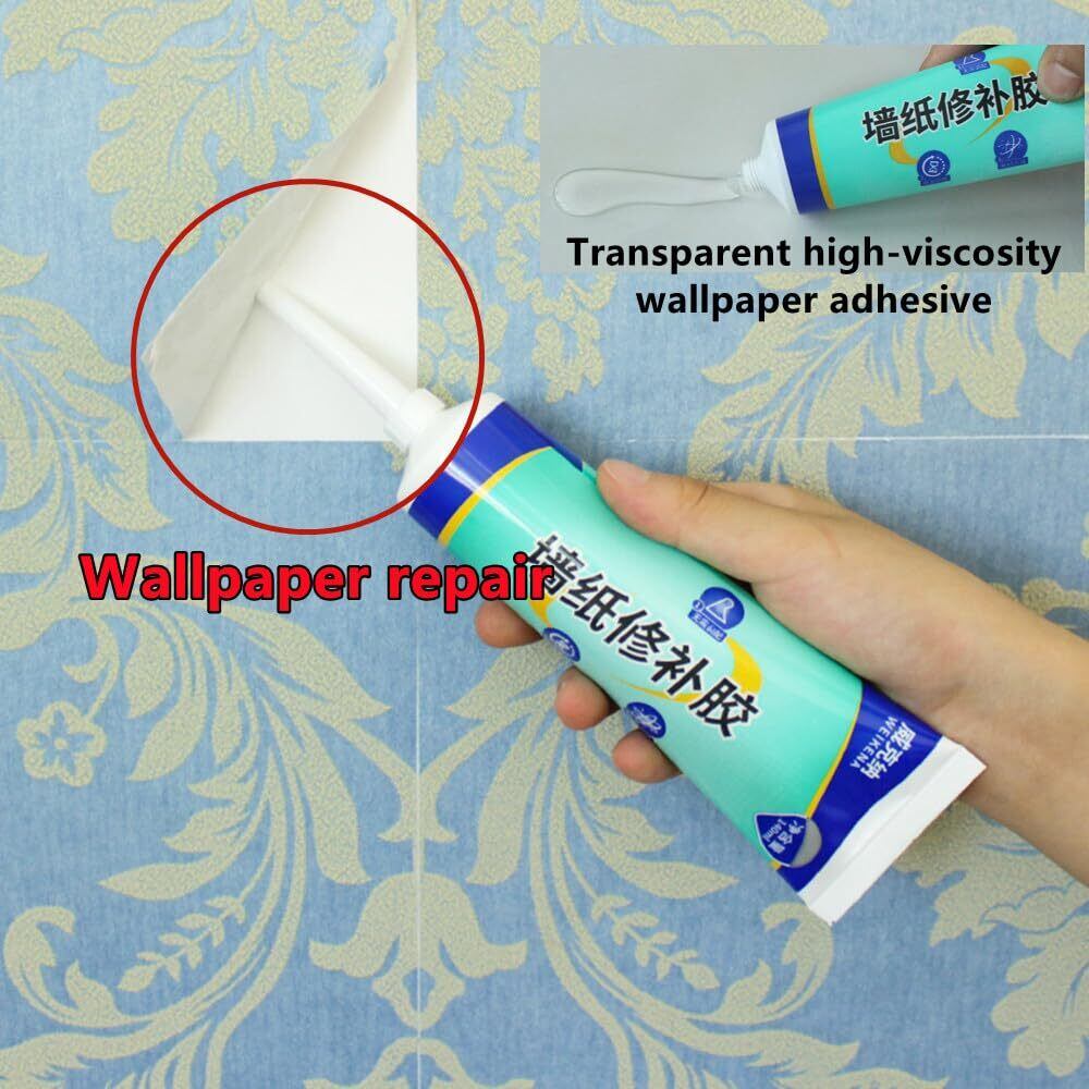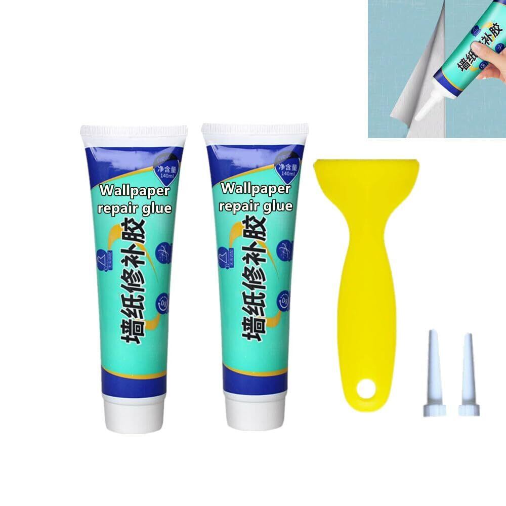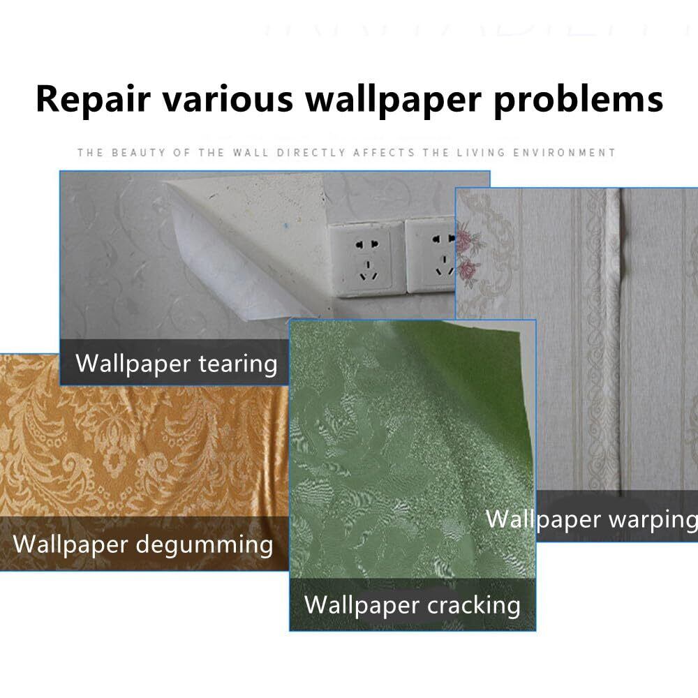 壁紙修理用接着剤2点、クリア壁紙ペーストキット、裂け目、縫い目、端を固定するための超強力な接着剤、継ぎ目の修復用、簡単に広げられる壁紙接着剤、ビニール壁紙用の強力な粘着力。