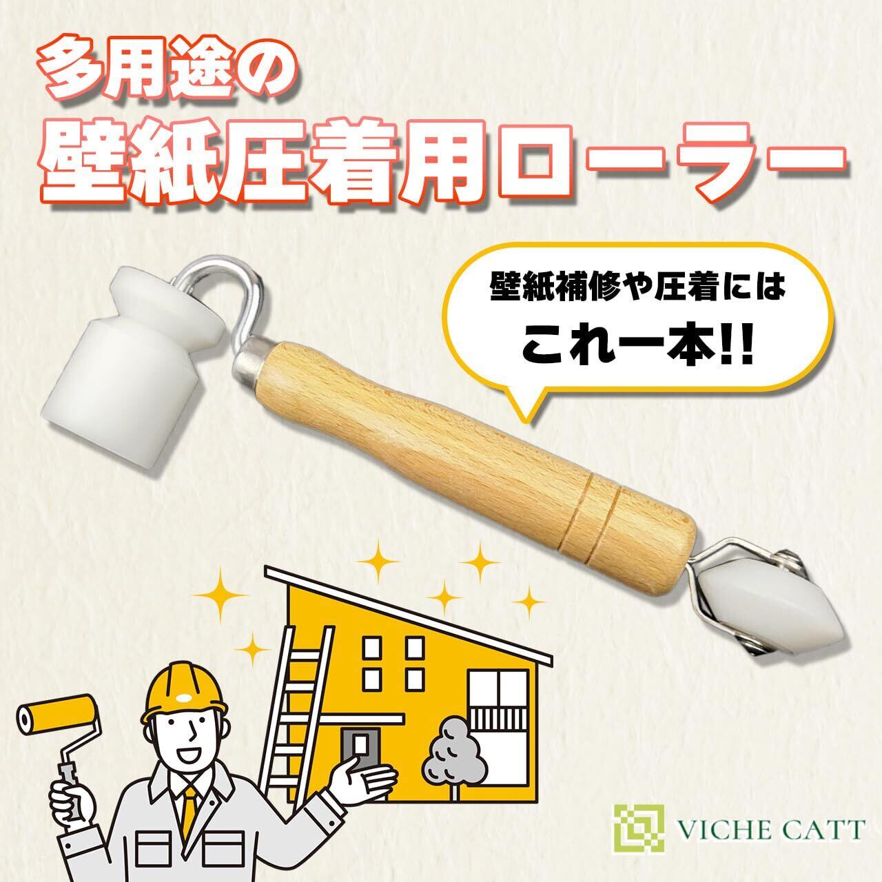 VICHE CATT 壁紙用 ローラー 塗装 ローラー ハンドローラー 木製ハンドル シームローラー 塗装用具 (POM樹脂)