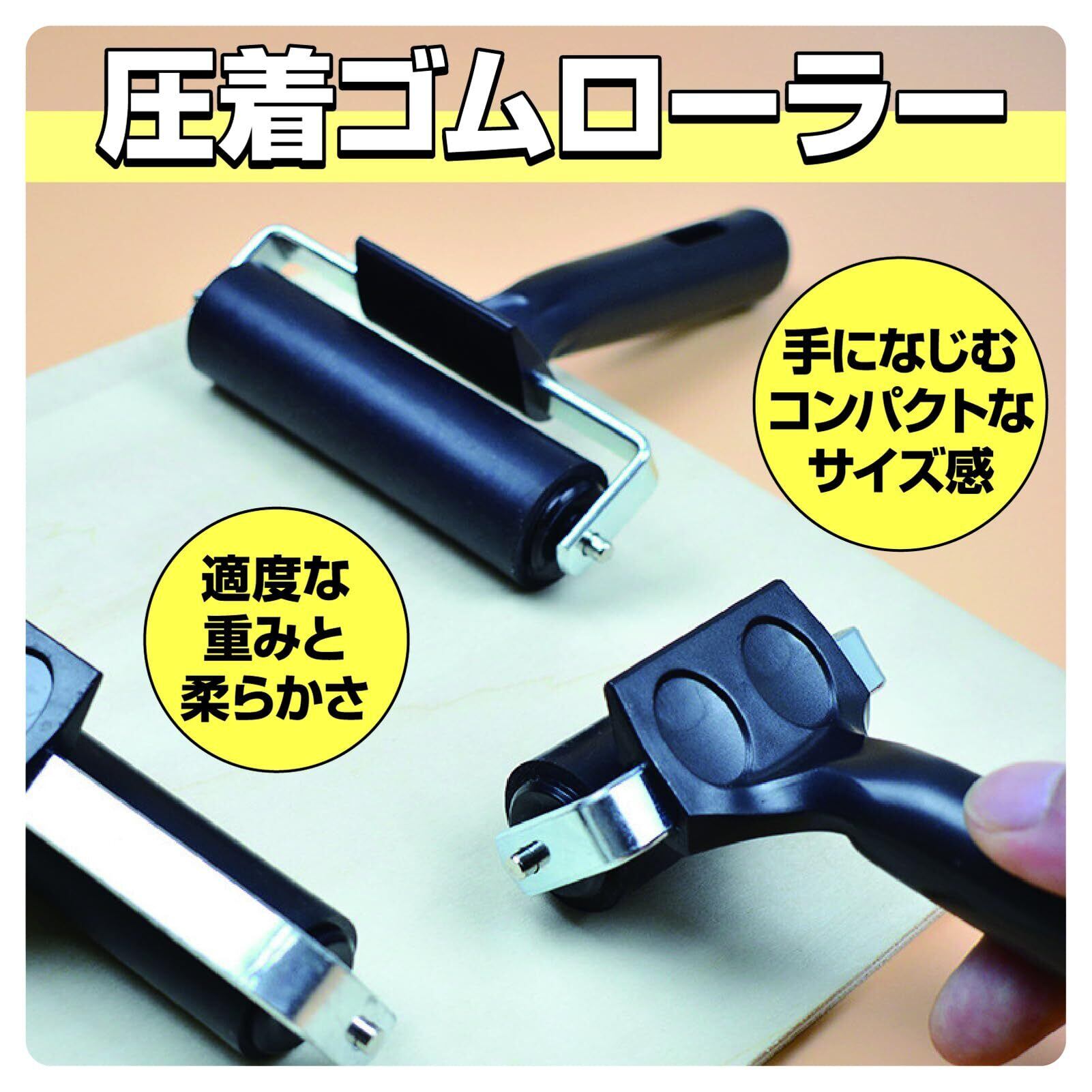 コンパクトなサイズ感がうれしい、ゴムローラー、圧着ローラーです。版画ローラーとしても利用OK。内装工事から、版画、フィルム、シート貼りまで。さまざまな用途に適したゴムローラーです。