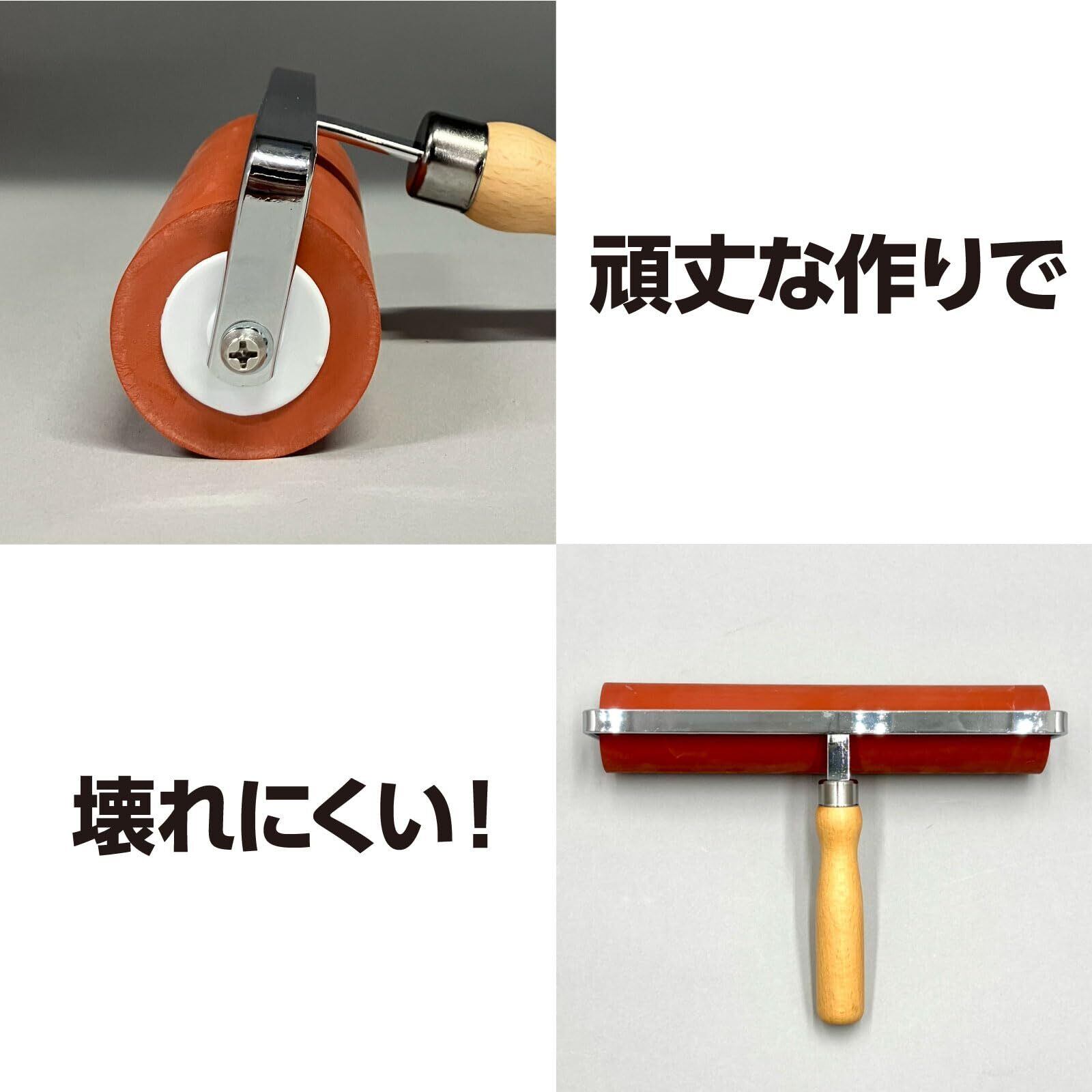 壁紙クロス、滑り止めテープ、アルミテープの貼りつけ、版画や空気抜き作業等に使えるゴムローラーです。